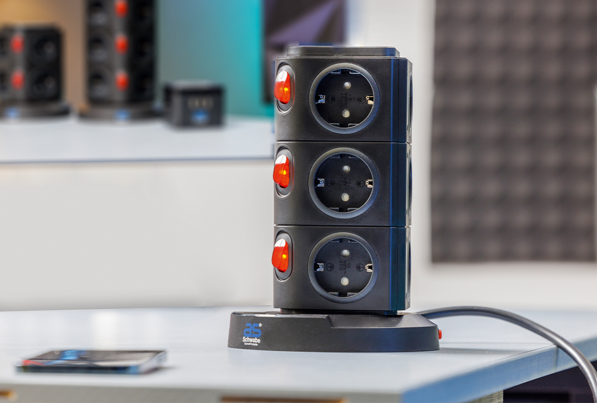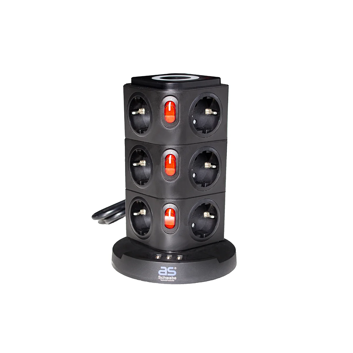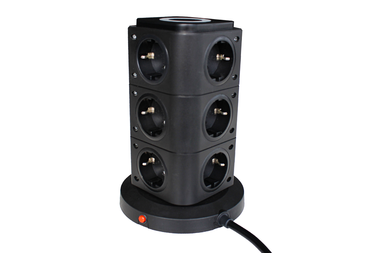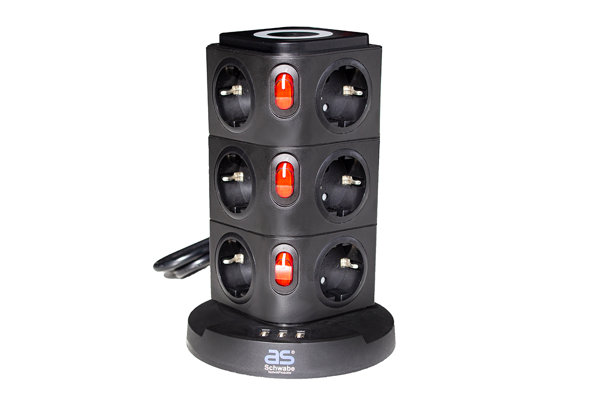 Thanks to its unusual horizontal design, this multiple socket outlet offers much more space than conventional multiple socket outlets. Even when using various devices at the same time, it never looks untidy, no more cable chaos! 12 earthed sockets + 3 USB ports, suitable for charging different devices at the same time, inductive charging station on top for all induction-compatible mobile phones, ideal for the office and home.