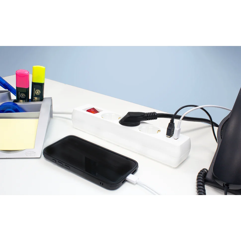 Ob Laptop, Monitor, Beleuchtung oder Smartphone – mit Schutzkontakt-Steckdosen and 2 USB-Ports (USB-A bis 18 W / USB-C bis 20 W) versorgst du mehrere Geräte gleichzeitig und effizient mit Energie.