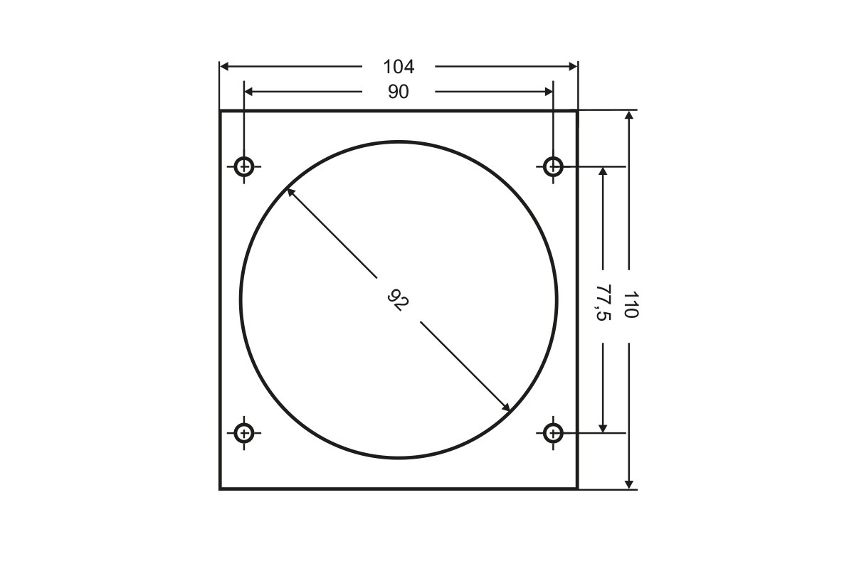 • Hole spacing HxW in mm: 90×77.5