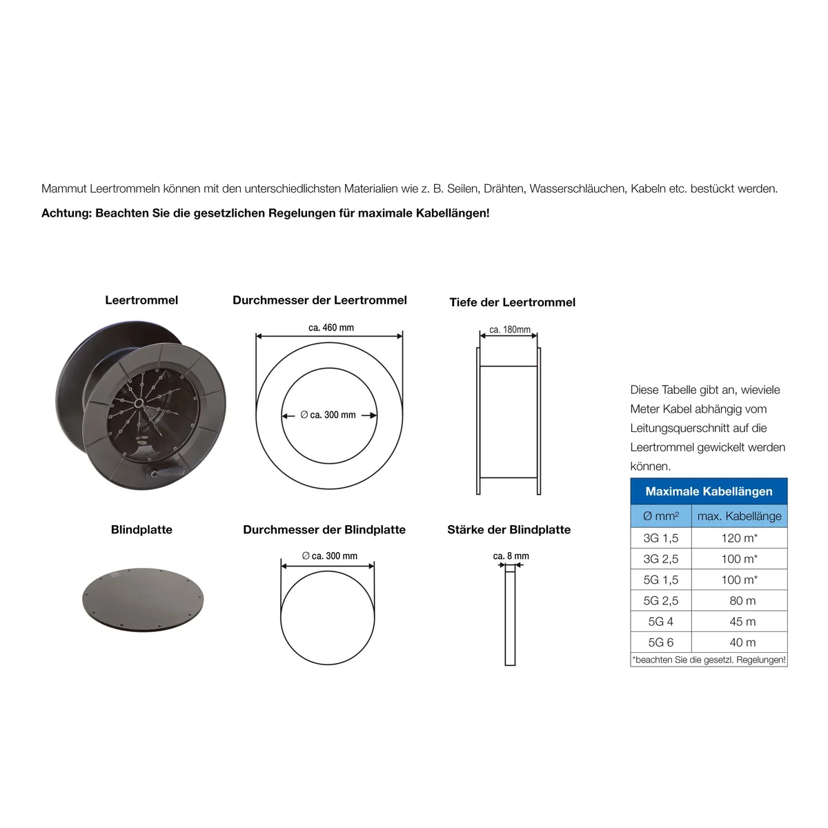Our mammoth empty drums can be fitted with a wide variety of materials, such as ropes, wire, water hoses, cables, etc. Ideal for lighting, sound and event technology.