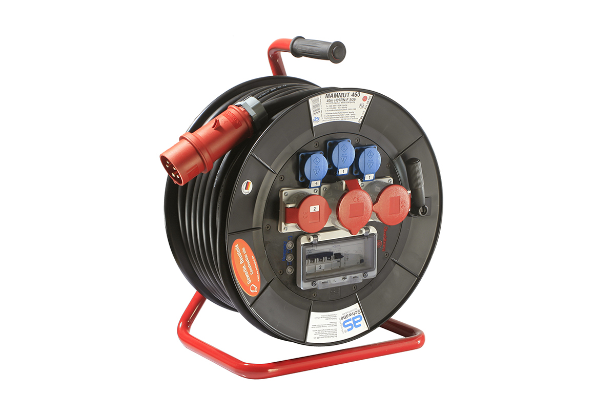 The extra-large Mammut cable reels are the ideal partner on any construction site. Equipped with up to 80 metres of heavy-duty rubber hose cable, they cover large distances with ease.