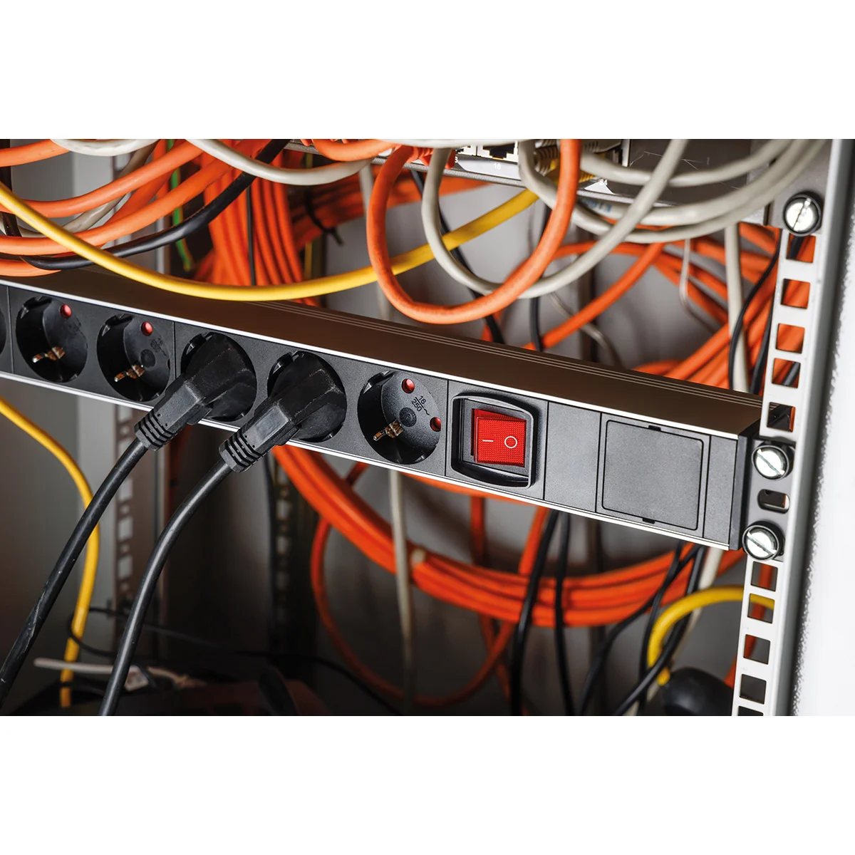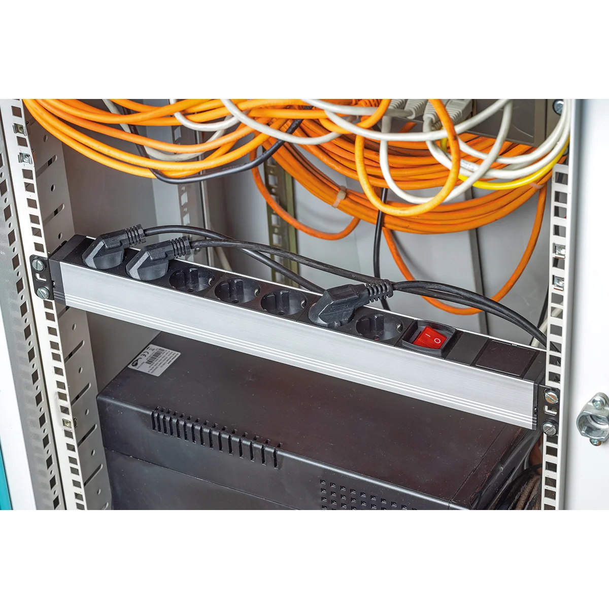 Unsere 19-Zoll-Steckdosenleisten in Standardbauweise (1HE) were specially developed for use in network cabinets and server racks developed. They enable the connection of multiple devices via earthed plugs to a single power connection and can be easily and quickly integrated into the profile rails of your 19″ rack thanks to the standardised design.