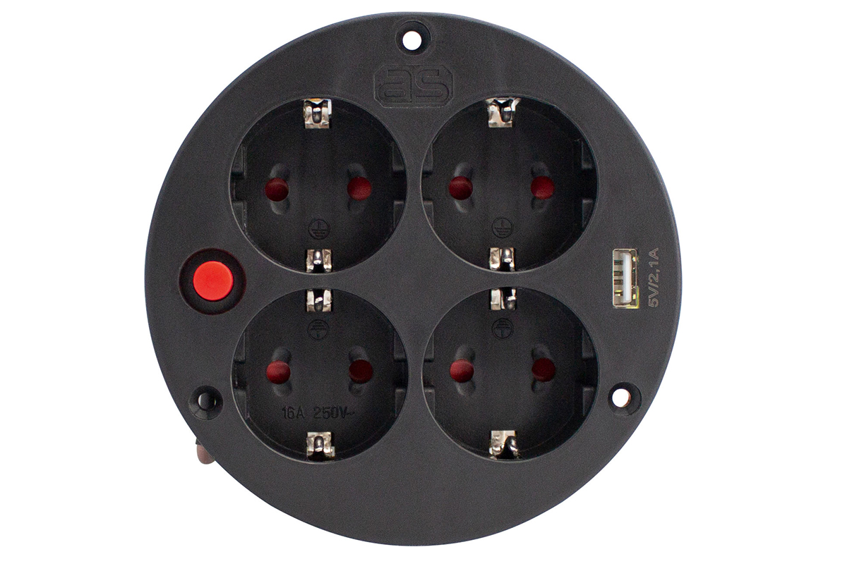 • Socket outlet insert with 4 earthed sockets with USB and voltage display