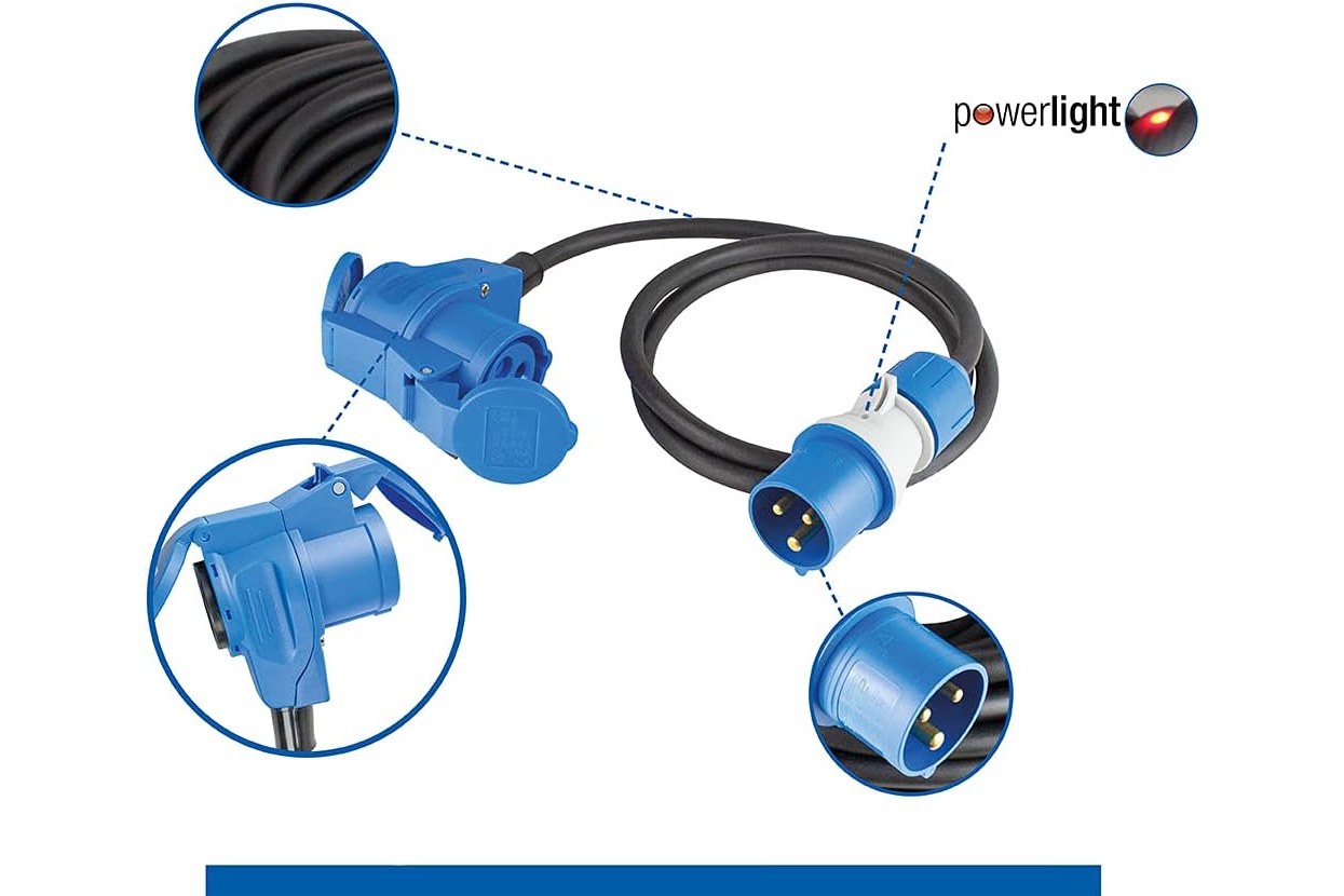 Przedłużacz adapter CEE 230 V, 16 A, 3P, wtyczka CEE 3P PowerLight na gniazdo kątowe CEE 3P z dodatkowym gniazdem 230 V, 16 A, IP44 H07RN-F 3G2,5 CZA 1,5 m | 61403