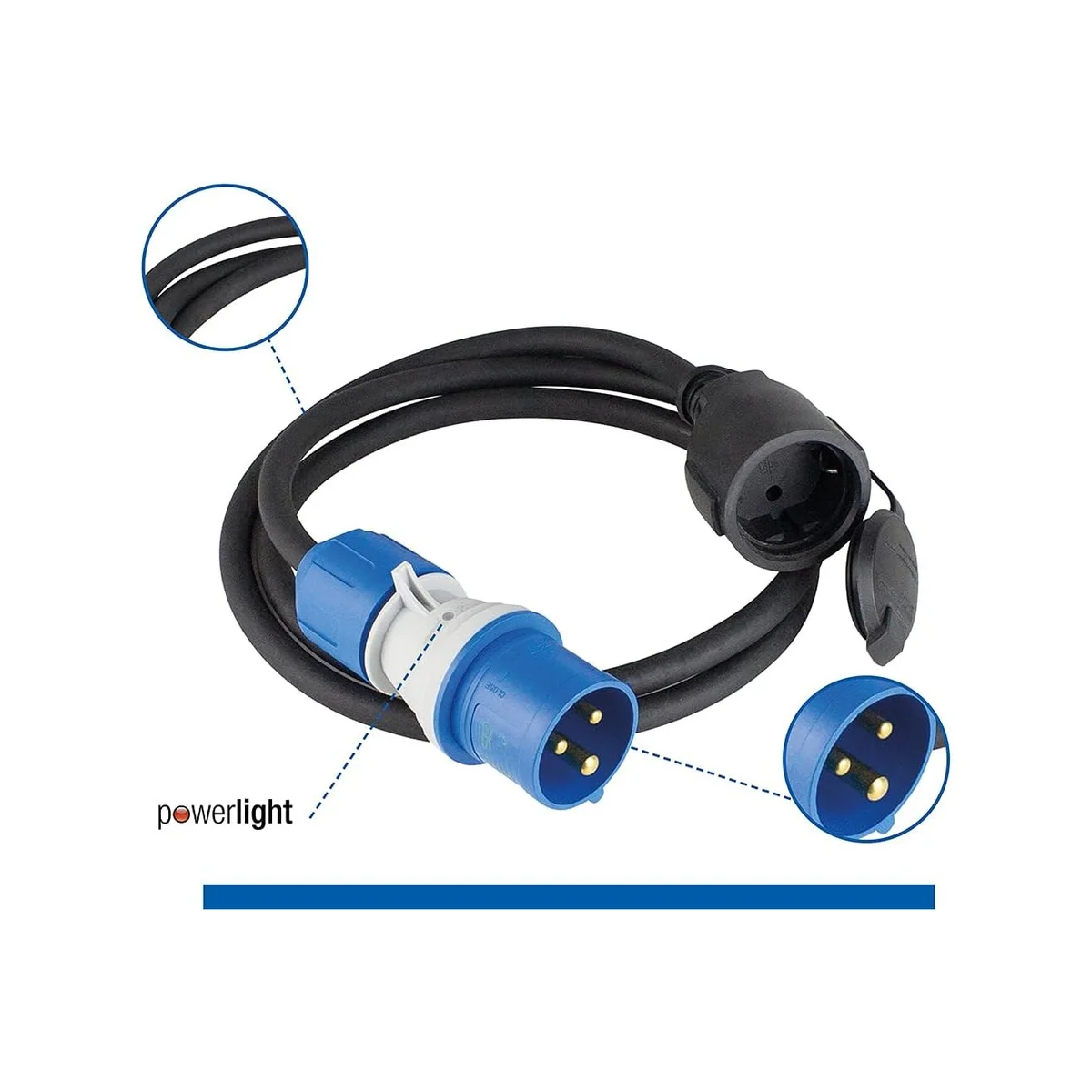 Przedłużacz adapter CEE 230 V, 16 A, 3P, wtyczka CEE 3P PowerLight na gniazdo z uziemieniem 1,5 m H07RN-F 3G2,5 CZA IP44 | 61408