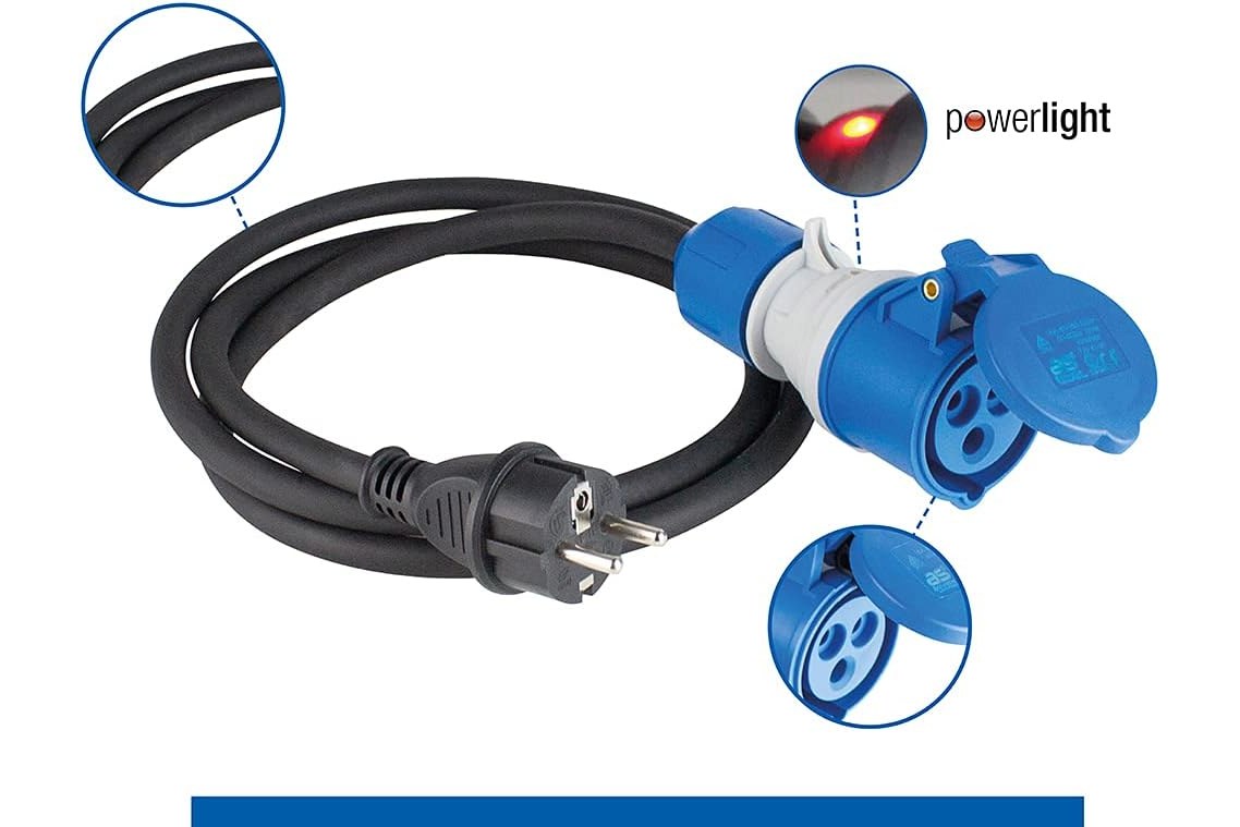 Przedłużacz adapter CEE 230 V, 16 A, 3P, wtyczka z uziemieniem na gniazdo CEE 3P PowerLight, IP44 H07RN-F 3G2,5 CZA 1,5 m | 61406