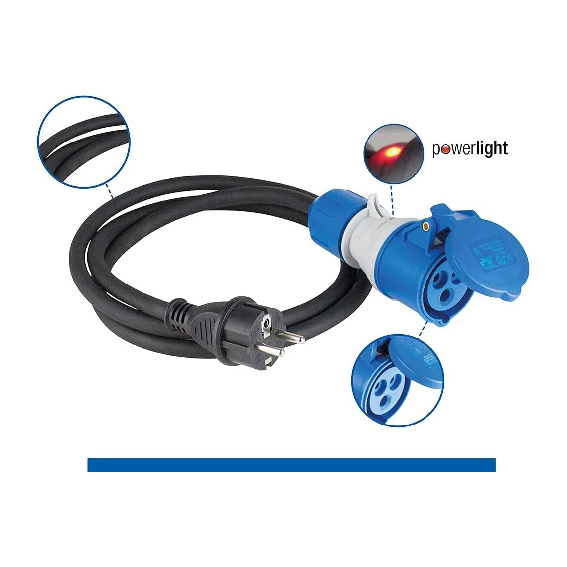 Przedłużacz adapter CEE 230 V, 16 A, 3P, wtyczka z uziemieniem na gniazdo CEE 3P PowerLight 1,5 m H07RN-F 3G2,5 CZA IP44 | 61406