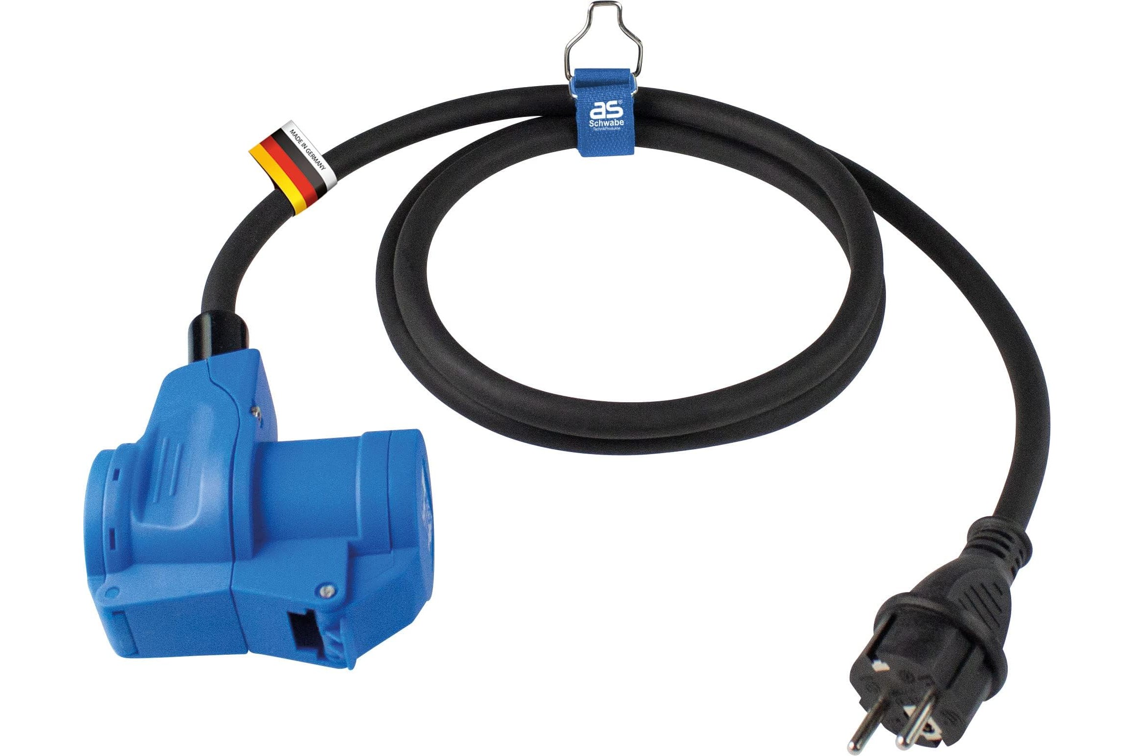 Przedłużacz adapter CEE 230 V, 16 A, 3P, wtyczka z uziemieniem na gniazdo kątowe CEE 3P z dodatkowym gniazdem 230 V, 16 A 1,5 m H07RN-F 3G2,5 CZA IP44 | 60483