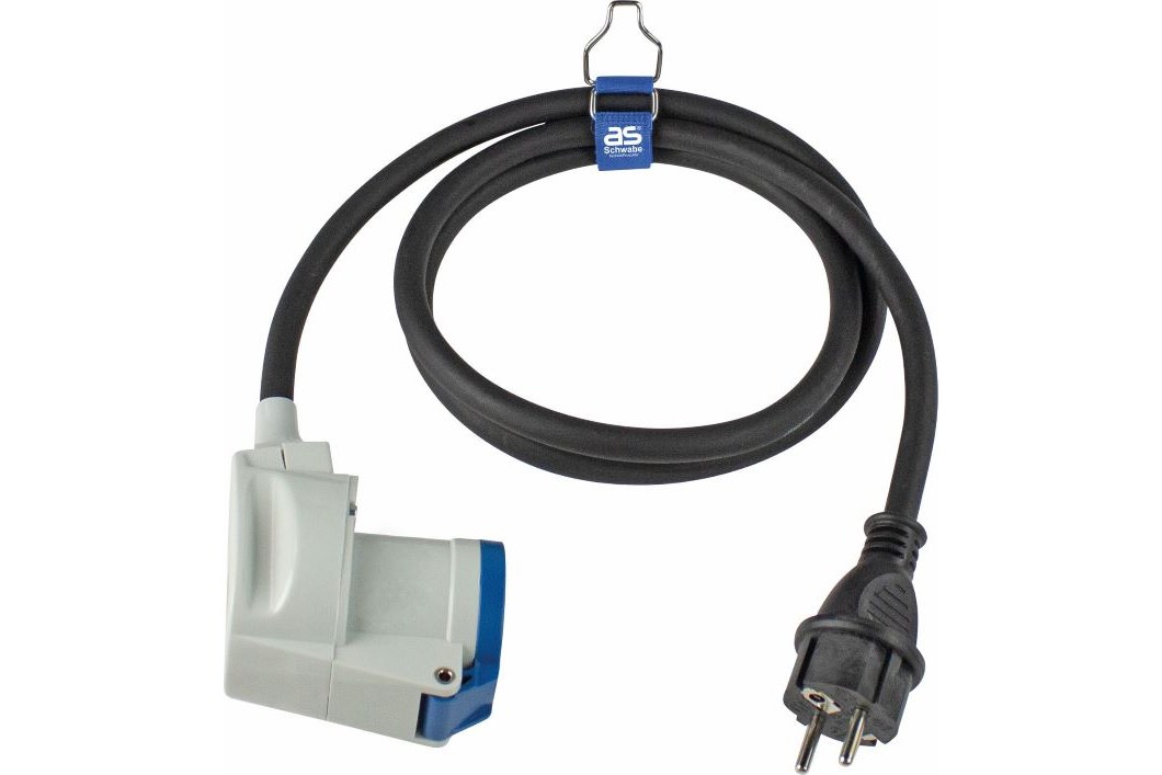 Przedłużacz adapter CEE 230 V, 16 A, 3P, wtyczka z uziemieniem na gniazdo kątowe CEE 3P 1,5 m H07RN-F 3G2,5 CZA IP44 | 61483