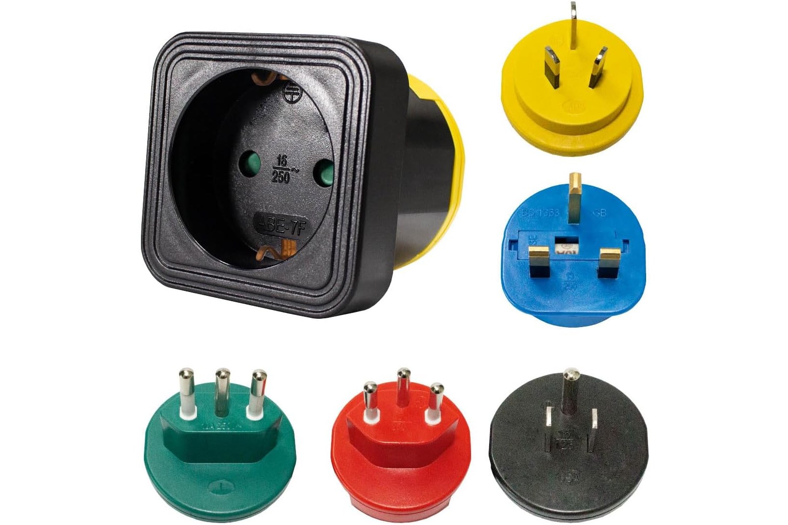 - adapter podróżny z pięcioma łatwo wymiennymi modułami krajowymi wtyczek