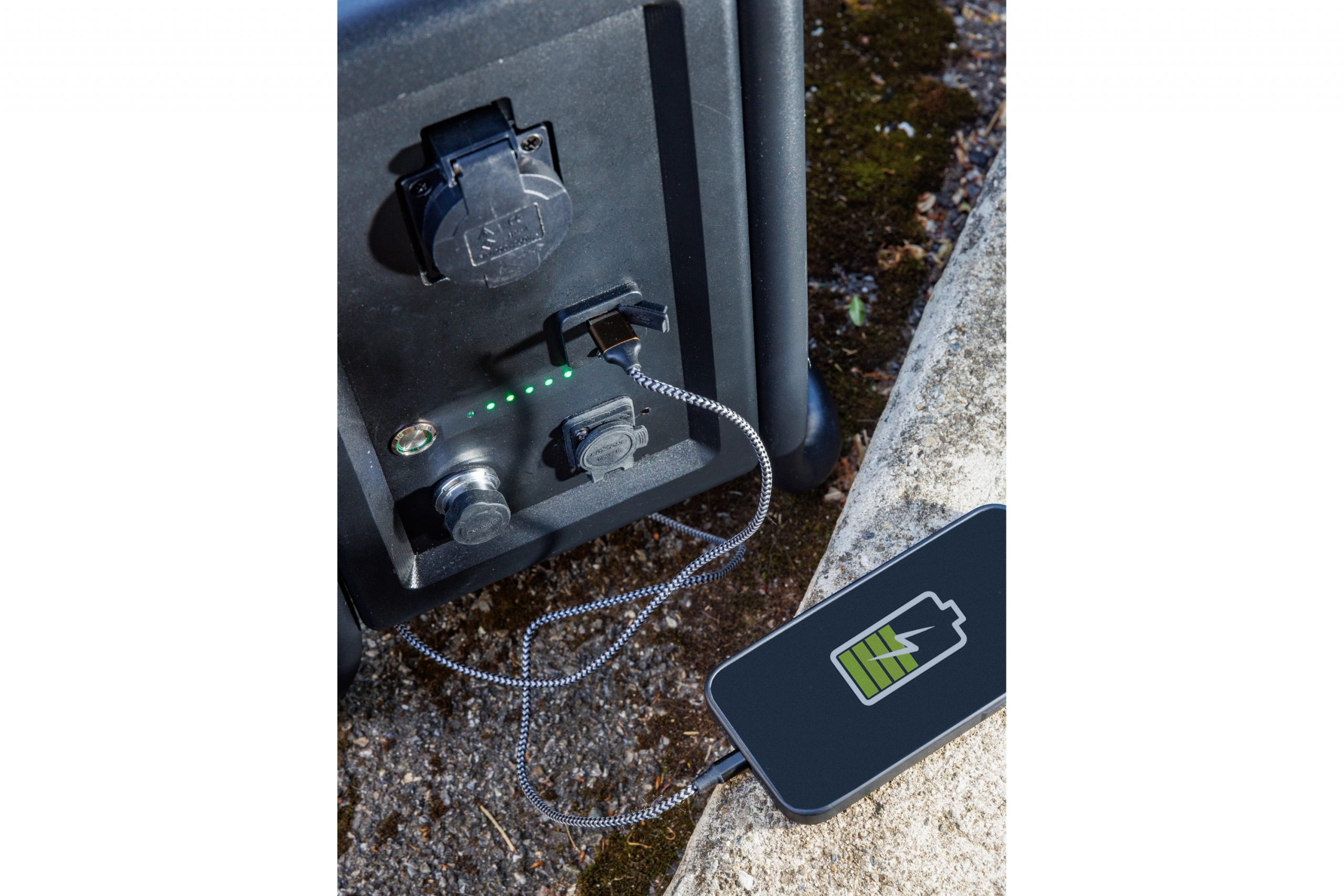 Wejście | 1x USB Typ A + 1x USB Typ C 1, 5 m kabel zasilający 230 V z wtyczką z uziemieniem i gniazdem Neutrik 1 m Kabel do ładowania z paneli słonecznych z złączami MC4 i wtykiem CNLINKO LP-20 |
