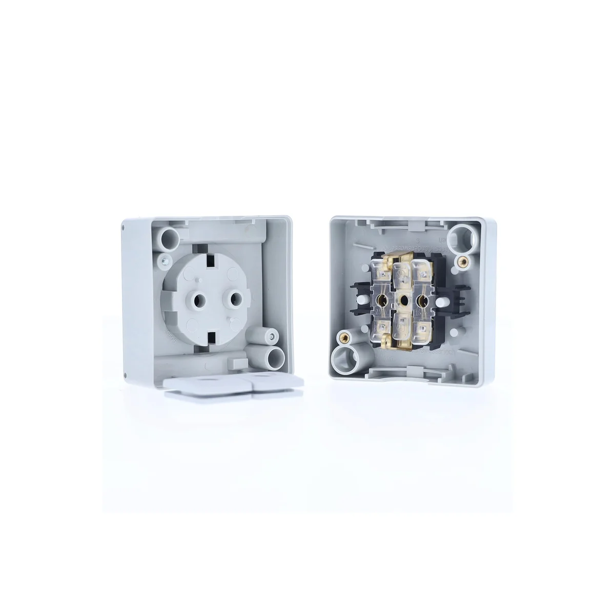 Gniazdo pojedyncze z uziemieniem 230 V, 16 A IP54 to solidne rozwiązanie przeznaczone do użytku w warunkach zewnętrznych oraz w pomieszczeniach o podwyższonej wilgotności. Dzięki klasie szczelności IP54, gniazdo skutecznie chroni przed kurzem oraz splunięciem wody, co czyni je idealnym wyborem do ogrodów, na tarasy czy w obiektach przemysłowych. Uziemienie zapewnia dodatkowe bezpieczeństwo użytkowania, minimalizując ryzyko porażenia prądem. Produkt charakteryzuje się wysoką trwałością oraz odpornością na działanie czynników atmosferycznych, co gwarantuje długotrwałe i bezawaryjne użytkowanie. Idealnie sprawdzi się w instalacjach elektrycznych, gdzie wymagane jest zapewnienie wydajności i bezpieczeństwa.