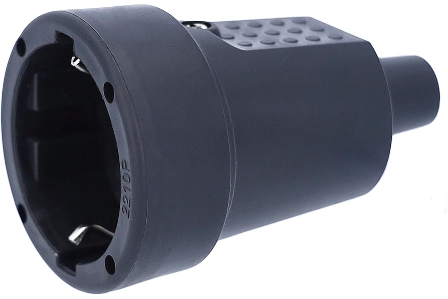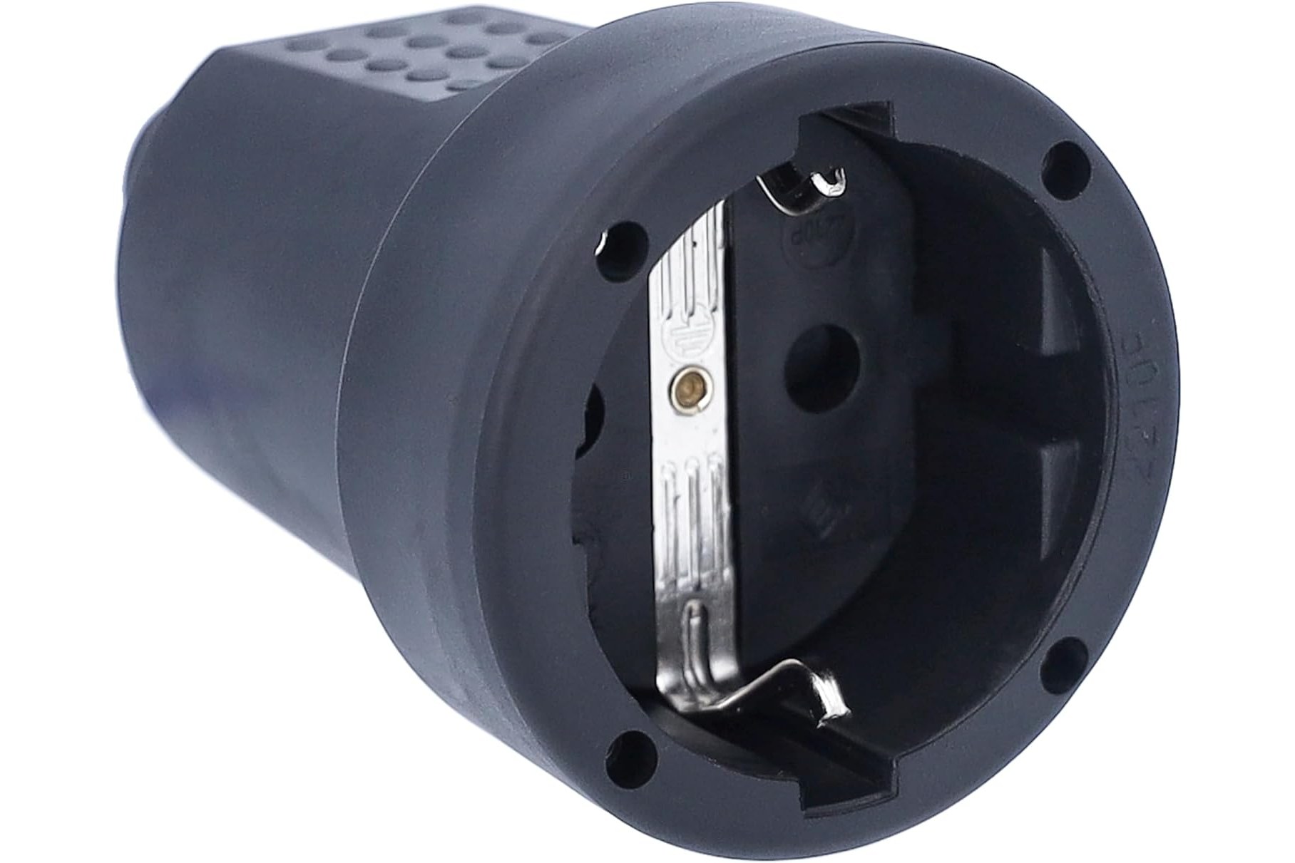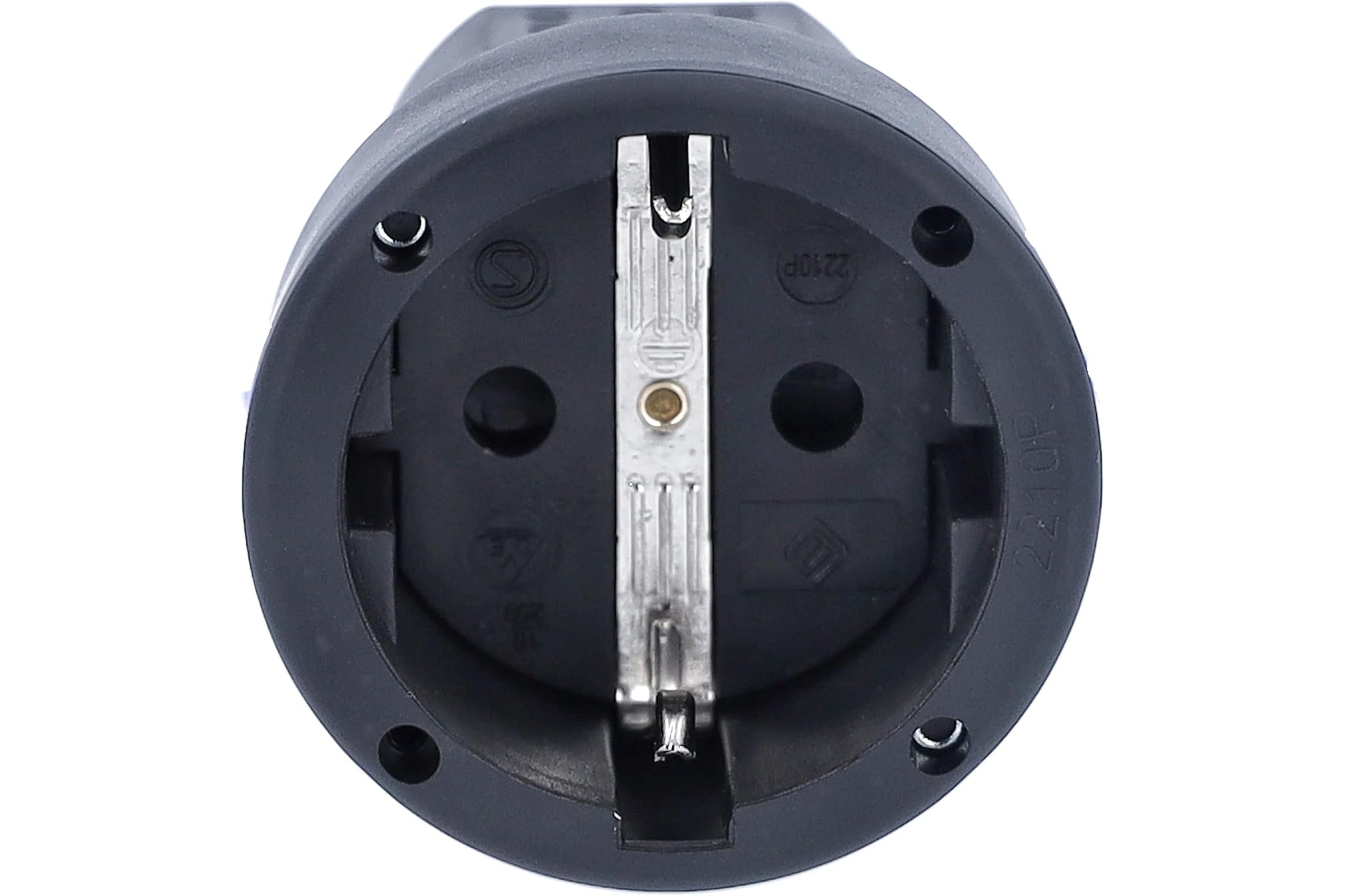 Gniazdo proste wykonane z wysokiej jakości tworzywa sztucznego, przeznaczone do użytku wewnętrznego, charakteryzuje się parametrami 230 V, 16 A oraz dwiema fazami i uziemieniem (2P+Z). Jego maksymalne dopuszczalne przekroje przewodów wynoszą 1,5 mm², co zapewnia elastyczność w montażu. Stopień ochrony IP20 oznacza, że gniazdo jest idealne do zastosowań w suchych pomieszczeniach, zapewniając jednocześnie bezpieczeństwo użytkowania. Jego kolor czarny doskonale wpisuje się w nowoczesne aranżacje wnętrz, oferując estetyczne wykończenie. Dzięki solidnej konstrukcji oraz niezawodności, gniazdo stanowi doskonałe rozwiązanie dla domów i biur, umożliwiając komfortowe korzystanie z urządzeń elektrycznych.