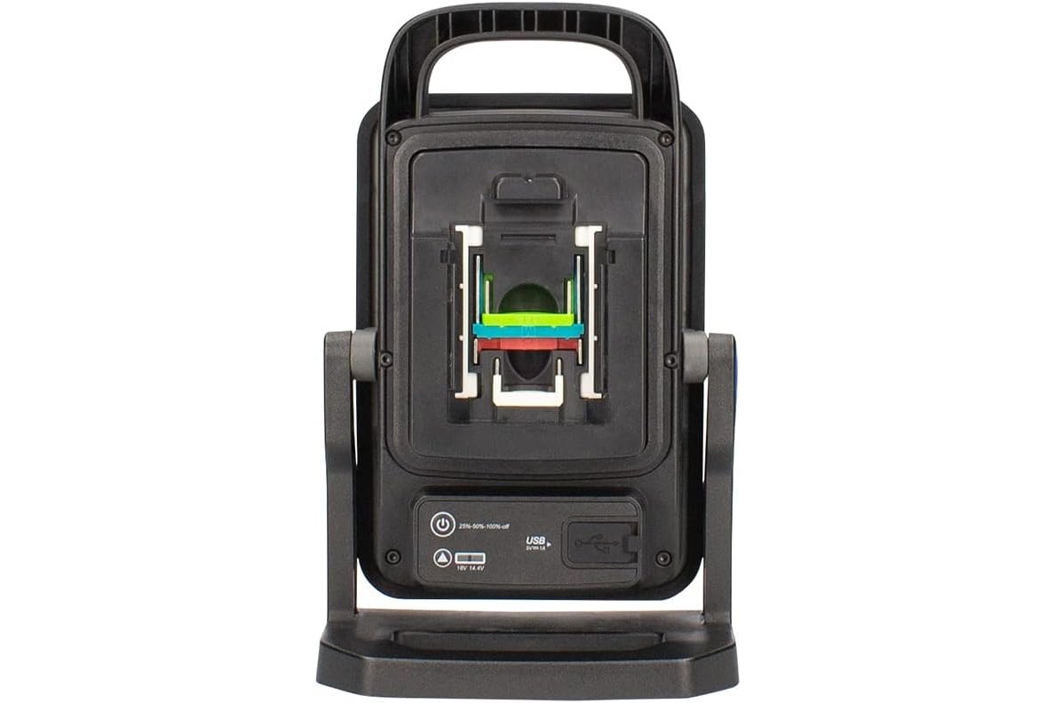 Lampa LED Acculine Multi A2 20 W to nowoczesne rozwiązanie oświetleniowe, idealne do zastosowań w terenie oraz w warsztatach. Przystosowana do zasilania akumulatorami 14,4 V oraz 18 V renomowanych producentów, takich jak DEWALT, MILWAUKEE, METABO i FISCHER, lampa oferuje dużą elastyczność i mobilność. Dzięki solidnej aluminiowej obudowie i panelowi sterowania soft touch, użytkownicy mogą cieszyć się nie tylko trwałością, ale również wygodą obsługi. Lampa dysponuje trzema poziomami świecenia o mocy świetlnej 650, 1300 oraz 2600 lumenów, co pozwala na dobranie optymalnego natężenia światła w zależności od potrzeb. Dodatkowo, może pełnić funkcję power banku, dzięki wyjściu USB 5 V, 1 A. Regulacja kąta oraz wbudowane magnesy w podstawie zapewniają łatwość montażu i stabilność w każdych warunkach.