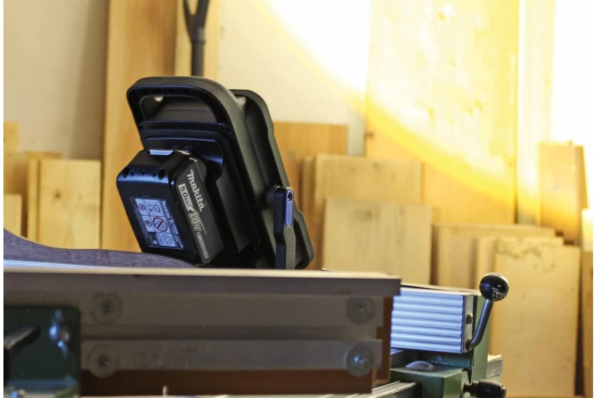 - Lampa punktowa ze zintegrowanym adapterem do zasilania ze standardowego akumulatora 14,4 V lub 18 V różnych producentów