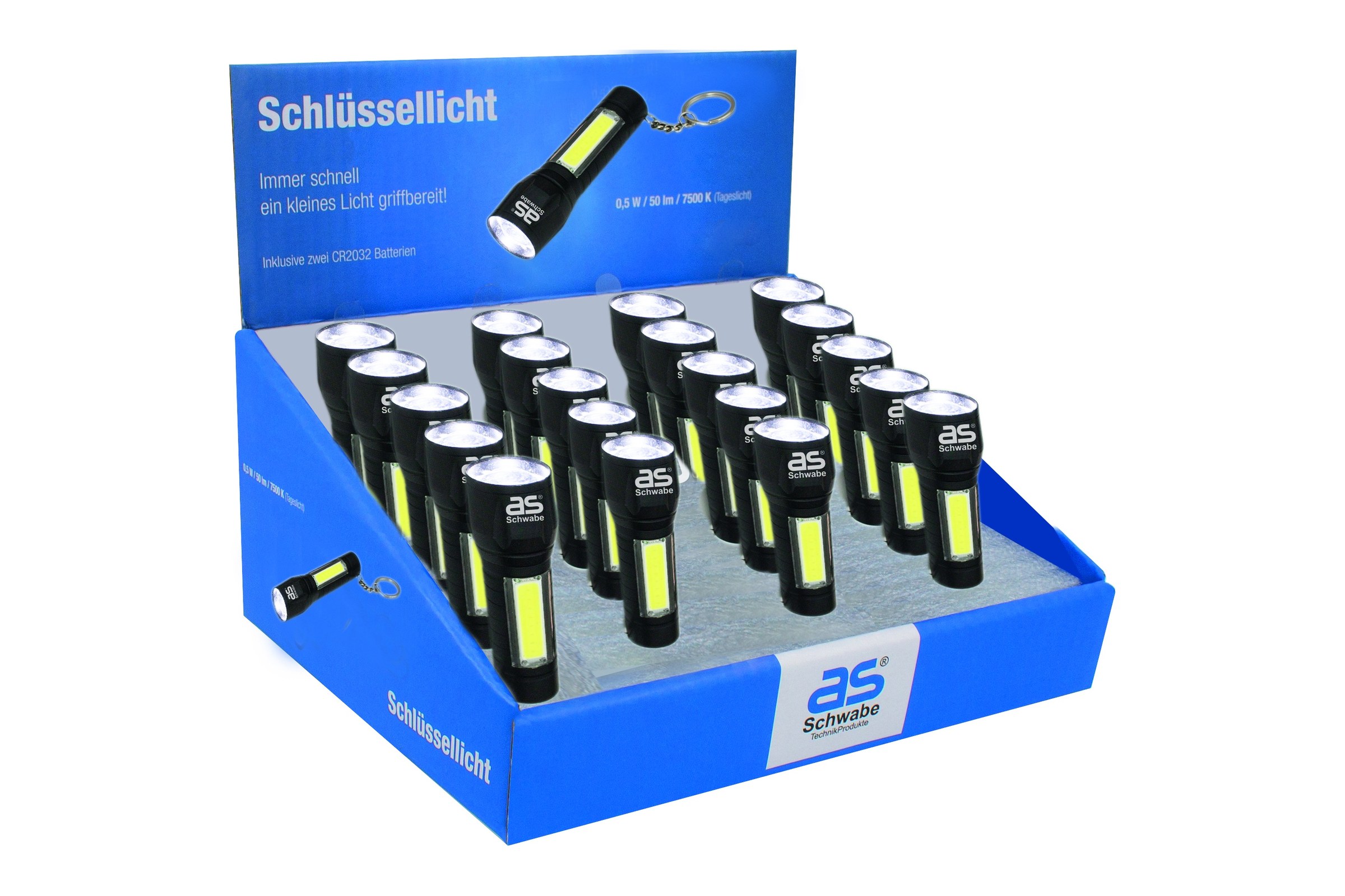 - ekspozytor promocyjny z 20 mini lampkami ręcznymi jako brelokami do umieszczenia przy stanowisku sprzedaży lub w strefie kas