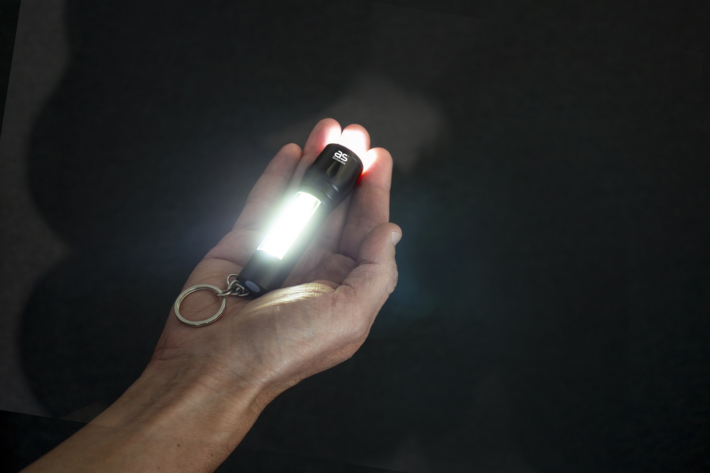 - mając latarkę MINI LED na breloczku, zawsze masz przy sobie poręczne źródło światła