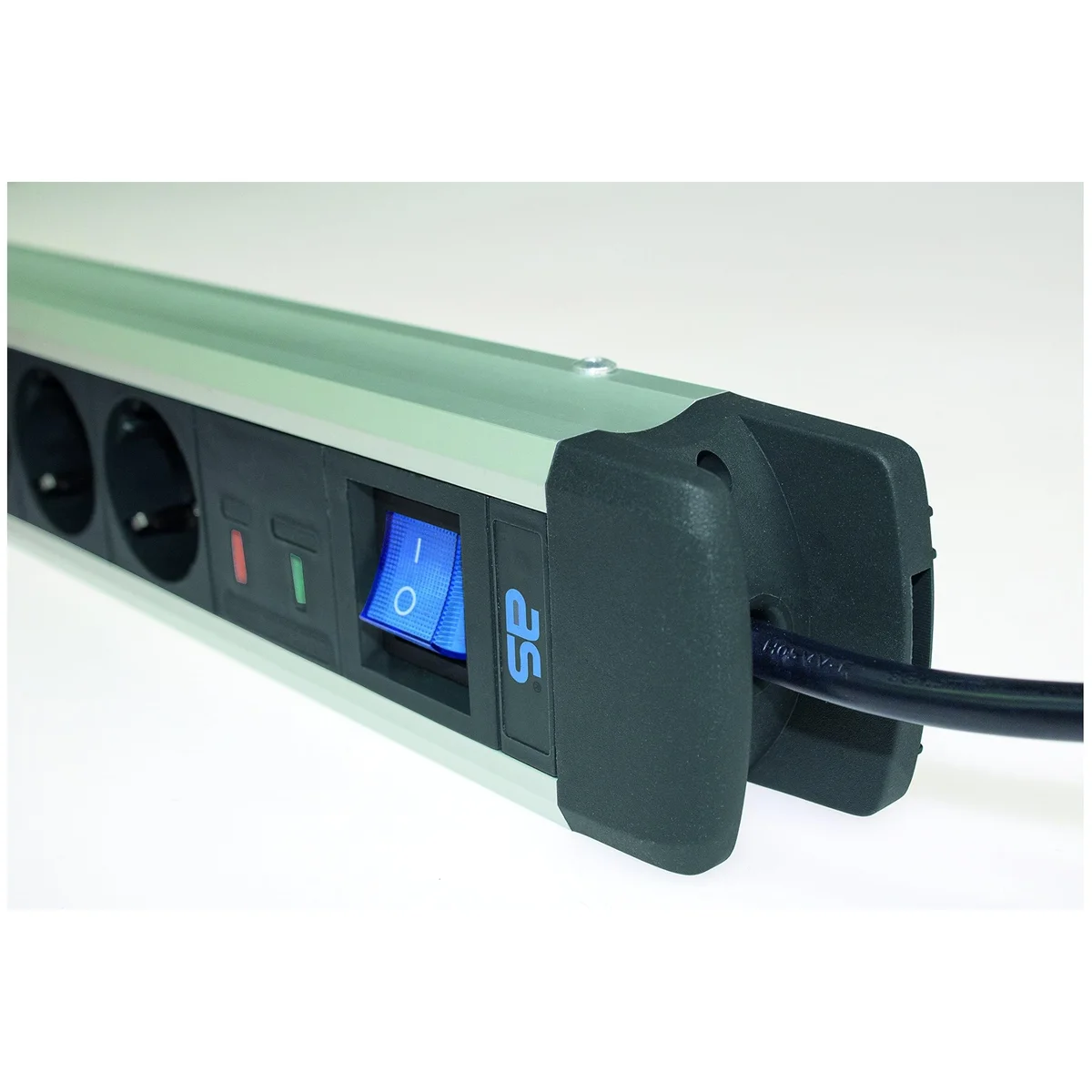 Przedłużacz listwowy przeciwprzepięciowy ALUX to idealne rozwiązanie dla osób potrzebujących niezawodnego zasilania w biurze lub domu. Wyposażony w 10 gniazd z uziemieniem oraz wtyczkę kątową, zapewnia wygodny dostęp do energii elektrycznej w miejscach o ograniczonej przestrzeni. Dzięki wbudowanemu układowi przeciwprzepięciowemu i dwóm diodom sygnalizującym stan zabezpieczenia, użytkownik ma pewność, że podłączone urządzenia są chronione przed nagłymi skokami napięcia. Obudowa z aluminium oraz podświetlany włącznik podnoszą funkcjonalność i estetykę przedłużacza. Urządzenie obsługuje maksymalne napięcie 230 V i prąd do 16 A, co czyni go wszechstronnym rozwiązaniem do codziennego użytku. Przeznaczony do użytku wewnętrznego, posiada klasę ochrony IP20, co gwarantuje jego bezpieczeństwo w pomieszczeniach.