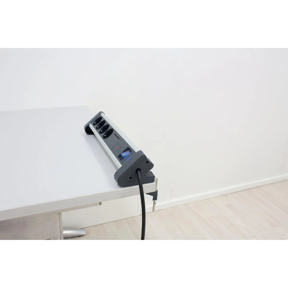 | Wyjście | 4x gniazdo IP20 z uziemieniem 230 V, 16 A, 2P+Z z włącznikiem2x port USB 5 V, 2 AZ funkcją montażu do biurka lub blatu roboczego |