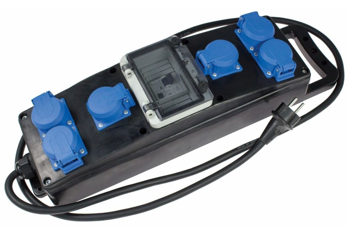 Wyjście | 6x gniazdo IP44 z klapką i uziemieniem 230 V, 16 A, 2P+Z |