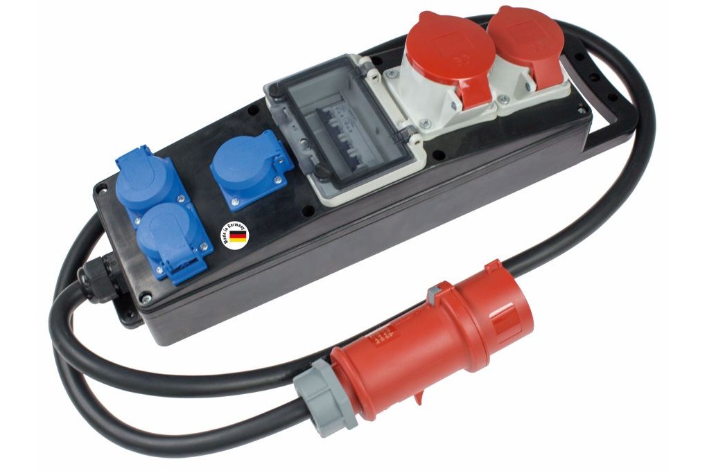 3x gniazdo IP44 z klapką i uziemieniem 230 V, 16 A, 2P+Z1x gniazdo CEE 400 V, 16 A, 5P1x gniazdo CEE 400 V, 32 A, 5P