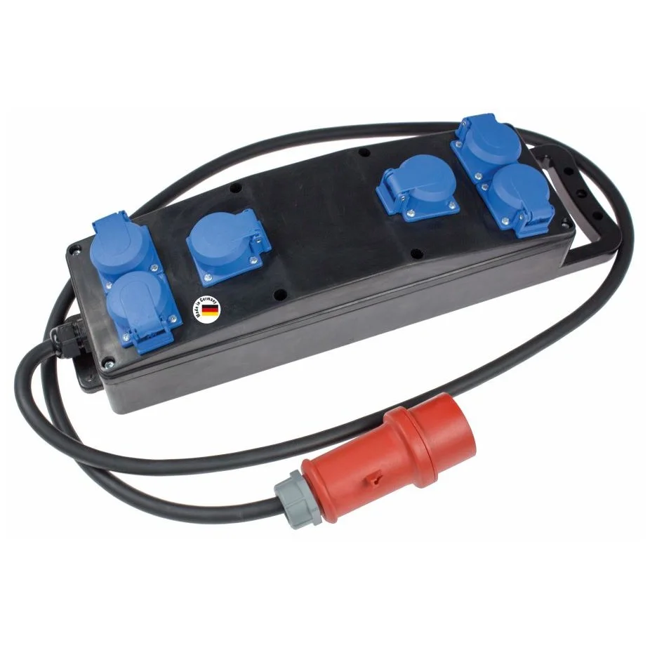 | Wyjście | 6x gniazdo IP44 z klapką i uziemieniem 230 V, 16 A, 2P+Z "F" |