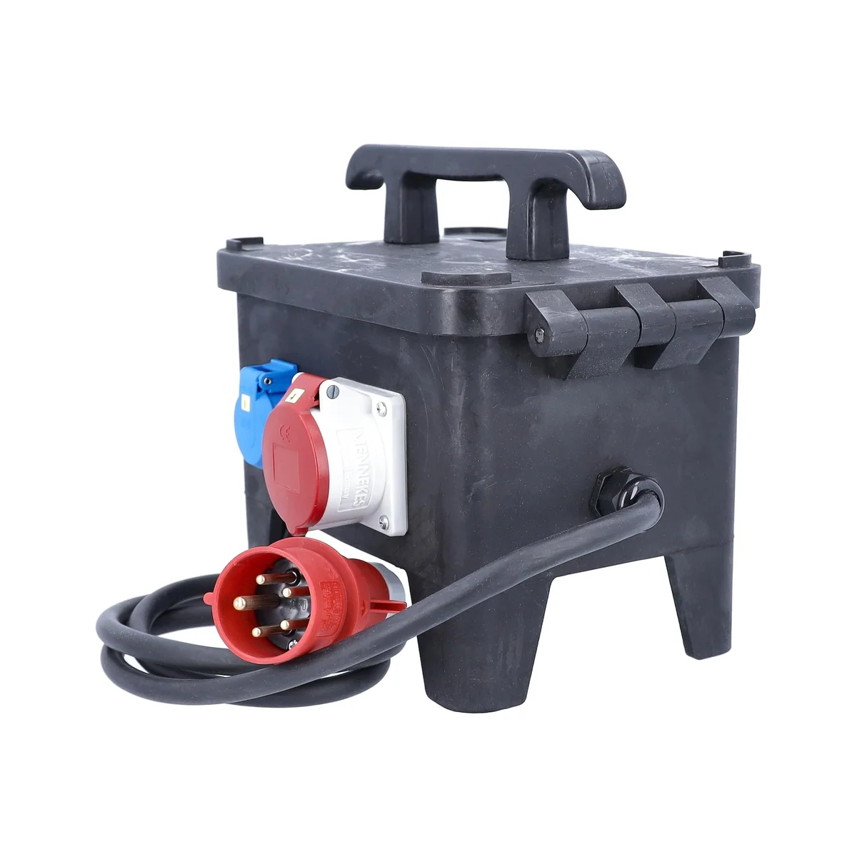 | Wyjście | 3x gniazdo IP44 z klapką i uziemieniem 230 V, 16 A, 2P+Z1x gniazdo CEE 400 V, 16 A, 5P |