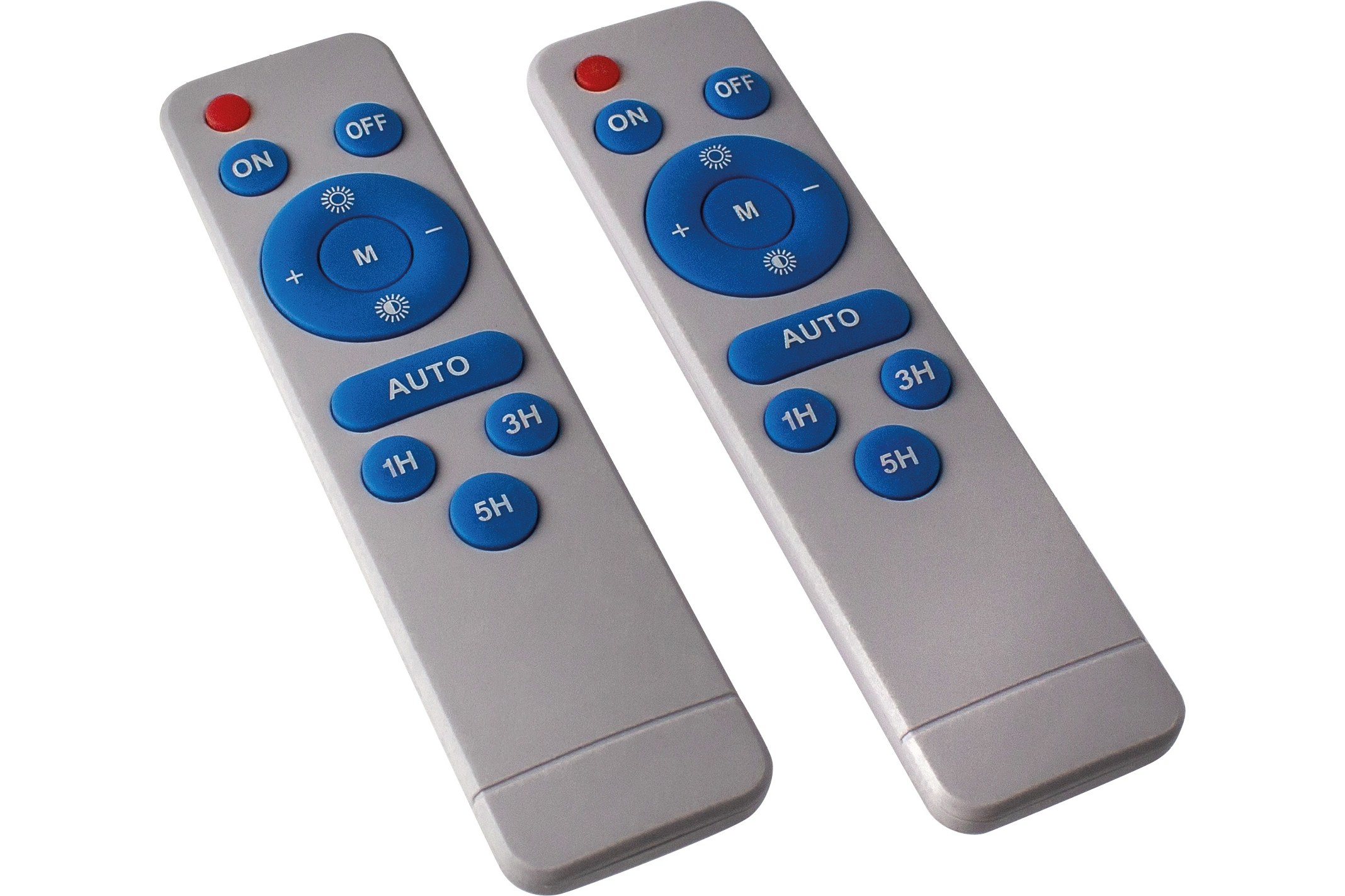 - dwa piloty do sterowania (jeden jako zapasowy), na podczerwień (zasięg od 8 do 10 m), z 2 bateriami AAA na pilota