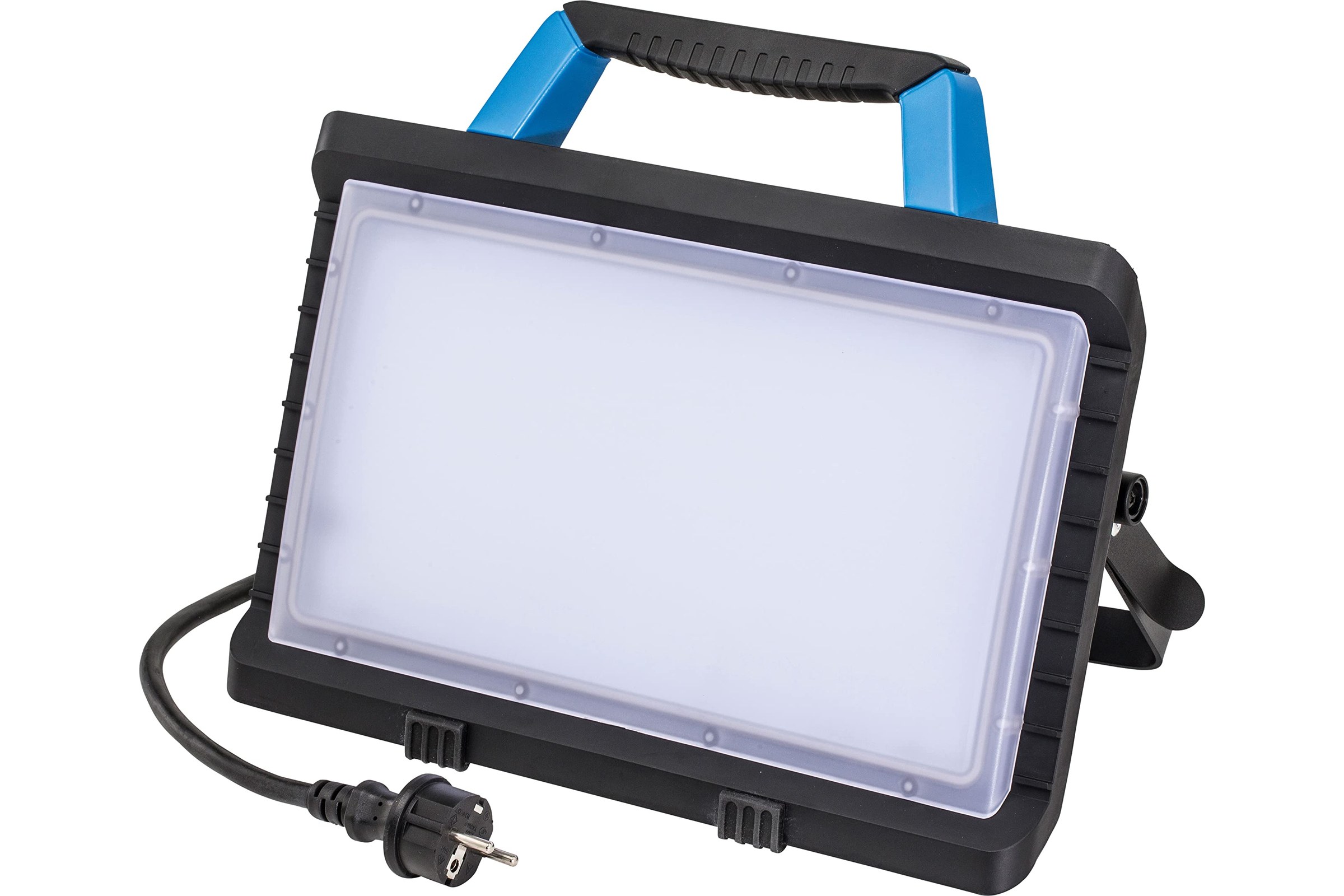 Naświetlacz mobilny Optiline LED o mocy 45 W to doskonałe rozwiązanie dla użytkowników poszukujących wydajnego i praktycznego źródła światła w różnorodnych warunkach. Dzięki mocy świetlnej wynoszącej 3800 lm oraz wysokiej efektywności sięgającej 104 lm/W, zapewnia jasne oświetlenie w neutralnej barwie 4000K. Urządzenie wyposażone jest w trzymetrowy przewód zasilający IP44 H07RN-F oraz dwa gniazda z klapką i uziemieniem 230 V, 16 A. Solidna obudowa w kolorze czarno-niebieskim oraz dyfuzor wykonany z odpornego tworzywa sztucznego gwarantują trwałość i odporność na warunki atmosferyczne. Naświetlacz oferuje dwa poziomy świecenia (50% i 100%), co pozwala na dostosowanie intensywności światła do aktualnych potrzeb użytkownika, czyniąc go idealnym rozwiązaniem dla budownictwa, prac w plenerze oraz wszelkich działań wymagających mobilnego oświetlenia.