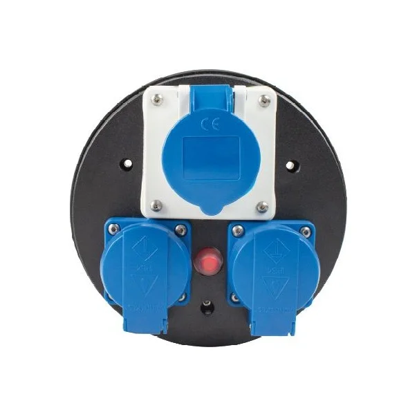 | Wyjście | 2x gniazdo IP44 z klapką niebieską z uziemieniem 230 V, 16 A, 2P+Z "F"1x gniazdo CEE 230 V, 16 A, 3P |