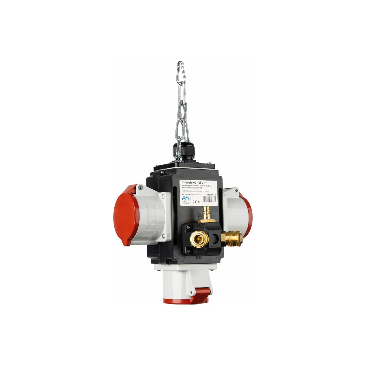 Podwieszana rozdzielnica energii MIXO V+ to innowacyjne rozwiązanie, które zapewnia wydajne zarządzanie zasilaniem w trudnych warunkach budowlanych i na zewnątrz. Wyposażona w dławicę dla przewodów od 5G4 do 5G6 oraz trzy gniazda CEE 400 V, 32 A, 5P, rozdzielnica umożliwia elastyczne podłączenie sprzętu elektrycznego. Dodatkowo, jedno gniazdo NW 7,2 zwiększa wszechstronność zastosowań. Obudowa wykonana z wytrzymałego tworzywa sztucznego oraz stopień ochrony IP44 gwarantują wysoką odporność na warunki atmosferyczne i mechaniczne. W zestawie znajduje się łańcuch do zawieszenia, co ułatwia instalację i podnosi komfort użytkowania w każdych okolicznościach.