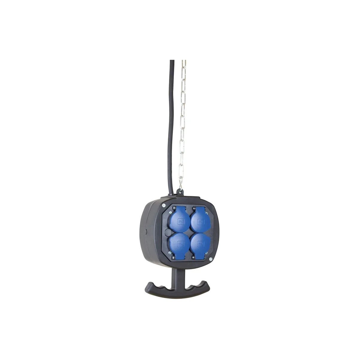 | Wyjście | 2x 4x gniazdo IP44 z klapką i uziemieniem 230 V, 16 A, 2P+Z, 3m ocynkowanego łańcucha w zestawie |