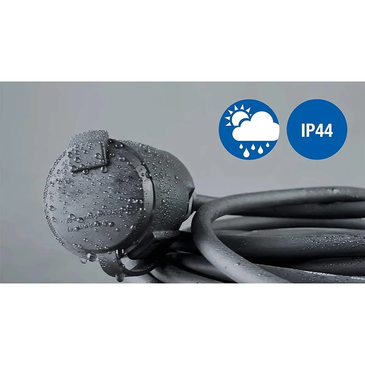 - IP44: chroniony przed ciałami obcymi i bryzgami wody