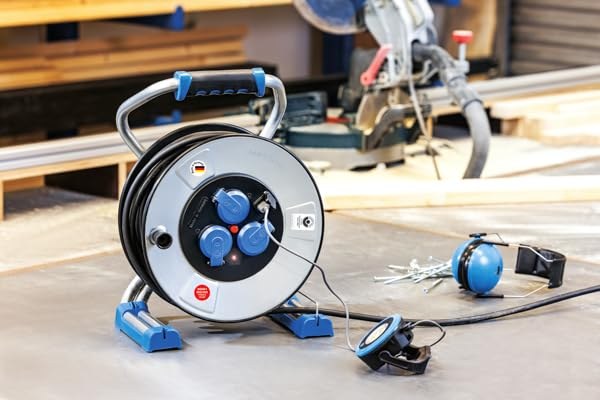 Przedłużacz bębnowy wzmacniany „IronCoat“ o średnicy 285 mm to solidne i funkcjonalne rozwiązanie, idealne do użytku na budowie oraz na zewnątrz. Wyposażony w 25-metrowy kabel H07RN-F 3G2,5 oraz gniazda IP44 z uziemieniem, zapewnia bezpieczne zasilanie przy maksymalnym obciążeniu 3500 W. Ergonomiczny uchwyt oraz metalowy stelaż zwiększają komfort użytkowania i stabilność urządzenia, a hamulec zapobiega niekontrolowanemu rozwijaniu się kabla. Dodatkowo, przedłużacz jest wyposażony w szereg praktycznych funkcji, takich jak gniazdo USB oraz sygnalizacja napięcia, co czyni go wszechstronnym narzędziem dla profesjonalistów. Dzięki klasie szczelności IP44, „IronCoat“ spełnia wymagania dotyczące ochrony przed wilgocią i pyłem, co zapewnia trwałość i niezawodność w trudnych warunkach.