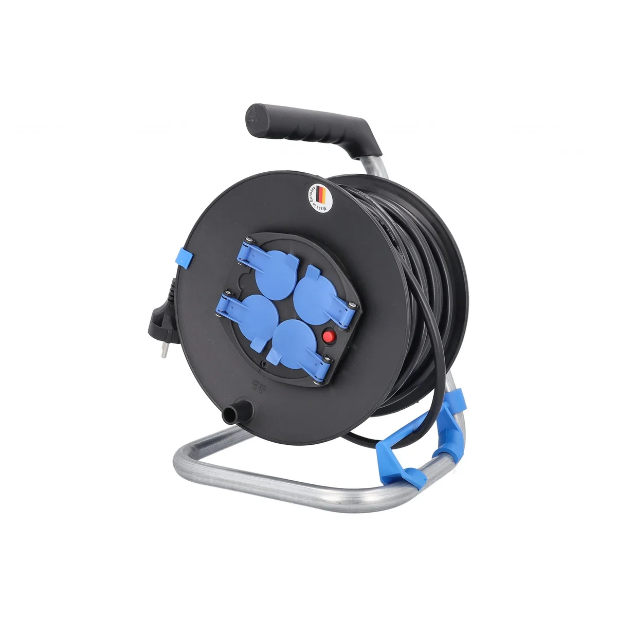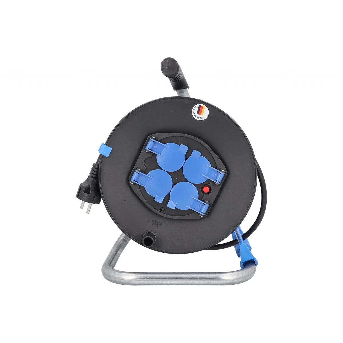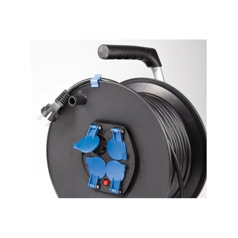 Przedłużacz bębnowy plastikowy o średnicy 230 mm to niezawodne rozwiązanie dla użytkowników poszukujących wszechstronnego źródła zasilania w pomieszczeniach. Wyposażony w 25-metrowy kabel H05RR-F 3G1,5, urządzenie obsługuje napięcie do 230 V oraz prąd o natężeniu 16 A, zapewniając bezpieczne i stabilne zasilanie dla różnych urządzeń elektrycznych. Bęben posiada cztery gniazda z uziemieniem IP20, chronione klapką, co zwiększa bezpieczeństwo użytkowania. Dodatkowe funkcje, takie jak metalowy stelaż, prowadnica do kabla oraz hamulec, gwarantują wygodę podczas pracy. Idealny do użytku wewnętrznego, przedłużacz jest doskonałym wyborem dla profesjonalnych i amatorski projektów, usprawniając organizację i dostępność energii elektrycznej.