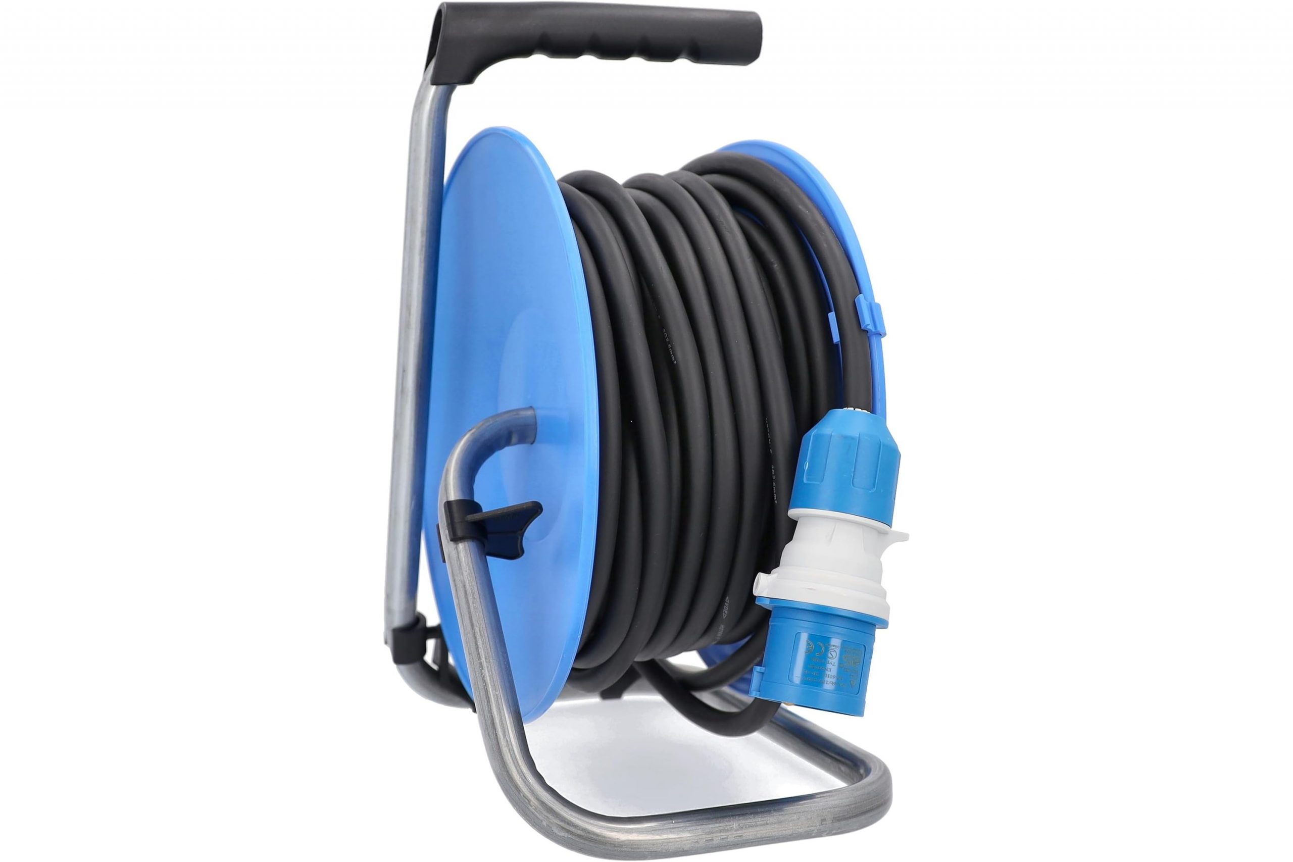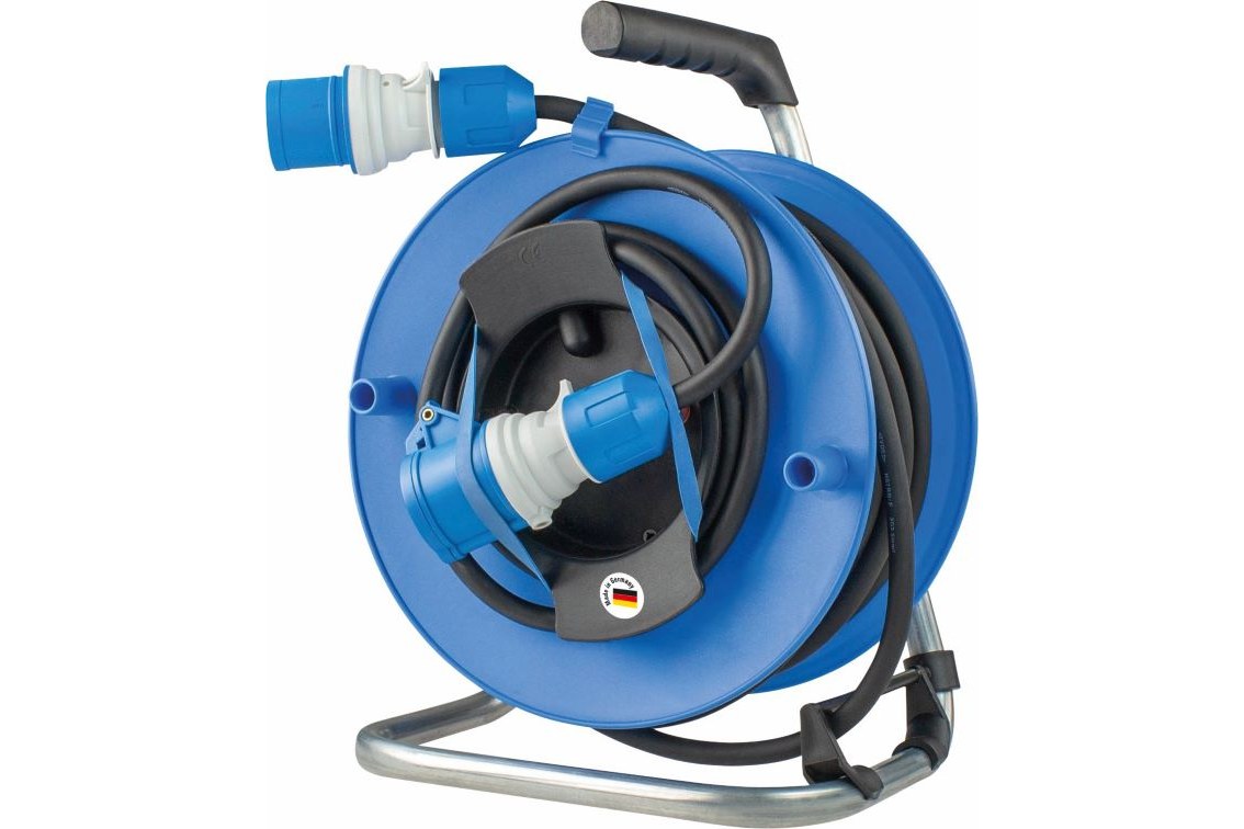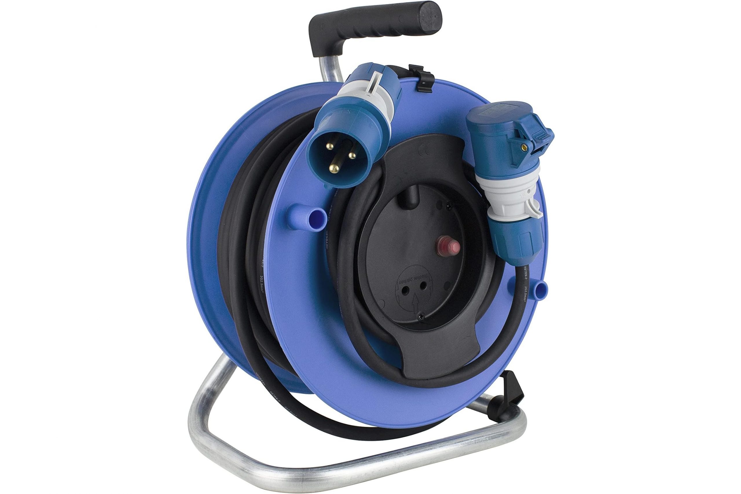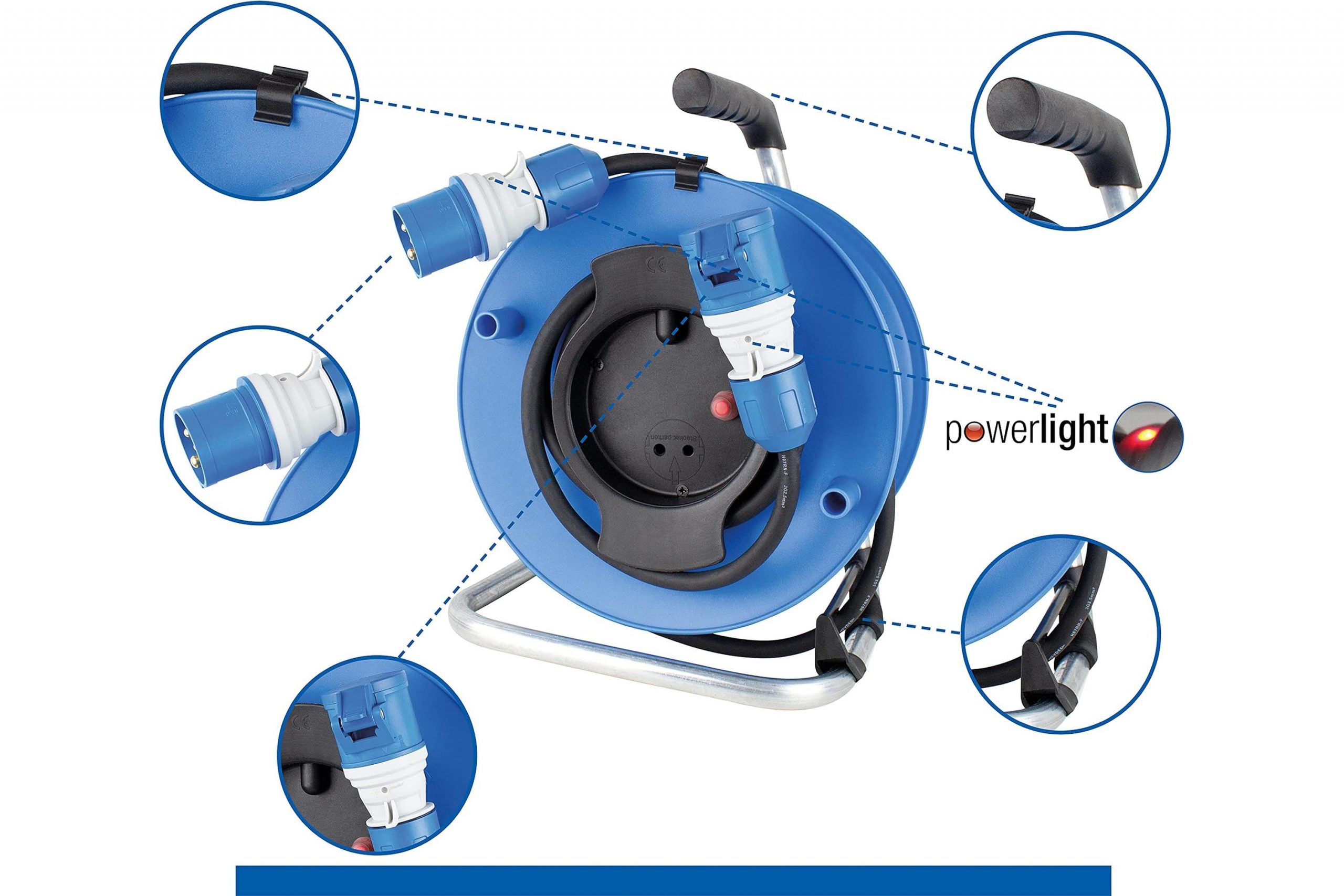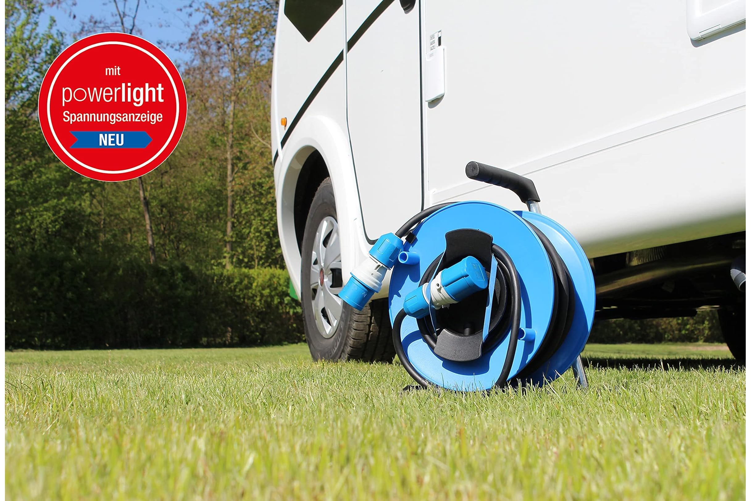 Przedłużacz bębnowy plastikowy kempingowy o średnicy 285 mm to idealne rozwiązanie dla osób poszukujących niezawodnego źródła zasilania podczas wypoczynku na świeżym powietrzu. Wyposażony w długość kabla 25 m, wtyczkę CEE 230 V oraz gniazdo CEE 230 V o maksymalnym natężeniu 16 A, umożliwia bezpieczne podłączenie urządzeń o mocy do 3500 W. Dzięki klasie ochrony IP44, produkt jest odporny na warunki atmosferyczne, co sprawia, że jest doskonały do użytku na zewnątrz. Ergonomiczny uchwyt oraz ocynkowana rama podstawy zapewniają wygodę użytkowania oraz stabilność podczas transportu. Dodatkowo, sygnalizacja napięcia Powerlight pozwala na bieżąco monitorować status zasilania.