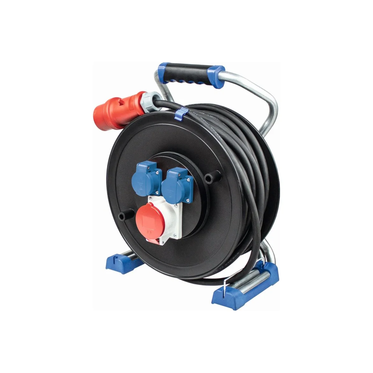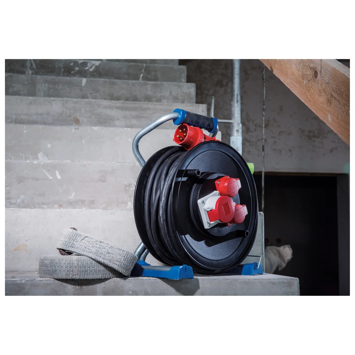 Przedłużacz bębnowy plastikowy Xperts CEE o średnicy 285 mm został zaprojektowany z myślą o profesjonalnym użytkowaniu, szczególnie w warunkach zewnętrznych. Wyposażony w 20 m kabla H07RN-F 5G2,5 oraz wtyczkę CEE 400 V, 16 A, 5P, zapewnia niezawodne zasilanie dla urządzeń wymagających wysokiej mocy do 11 kW. Solidny stelaż metalowy, wykonany z podwójnych rur, gwarantuje stabilność i odporność na uszkodzenia, a ergonomiczny uchwyt ułatwia transport. Dodatkowo, wbudowane gniazda (1x CEE 400 V, 16 A, 5P oraz 2x IP44 z klapką) z uziemieniem oferują wszechstronność w użytkowaniu, a zastosowany termik oraz klasa ochrony IP44 zapewniają bezpieczeństwo i komfort pracy na zewnątrz.
