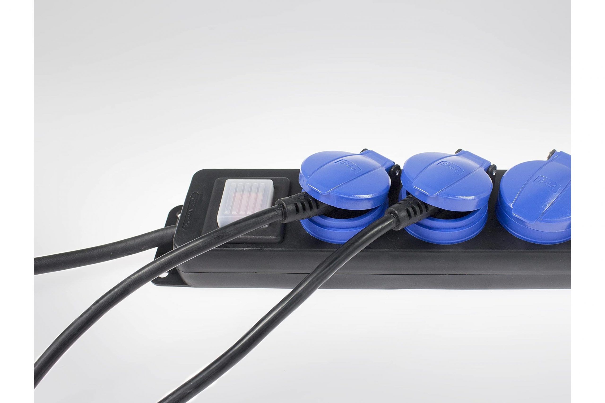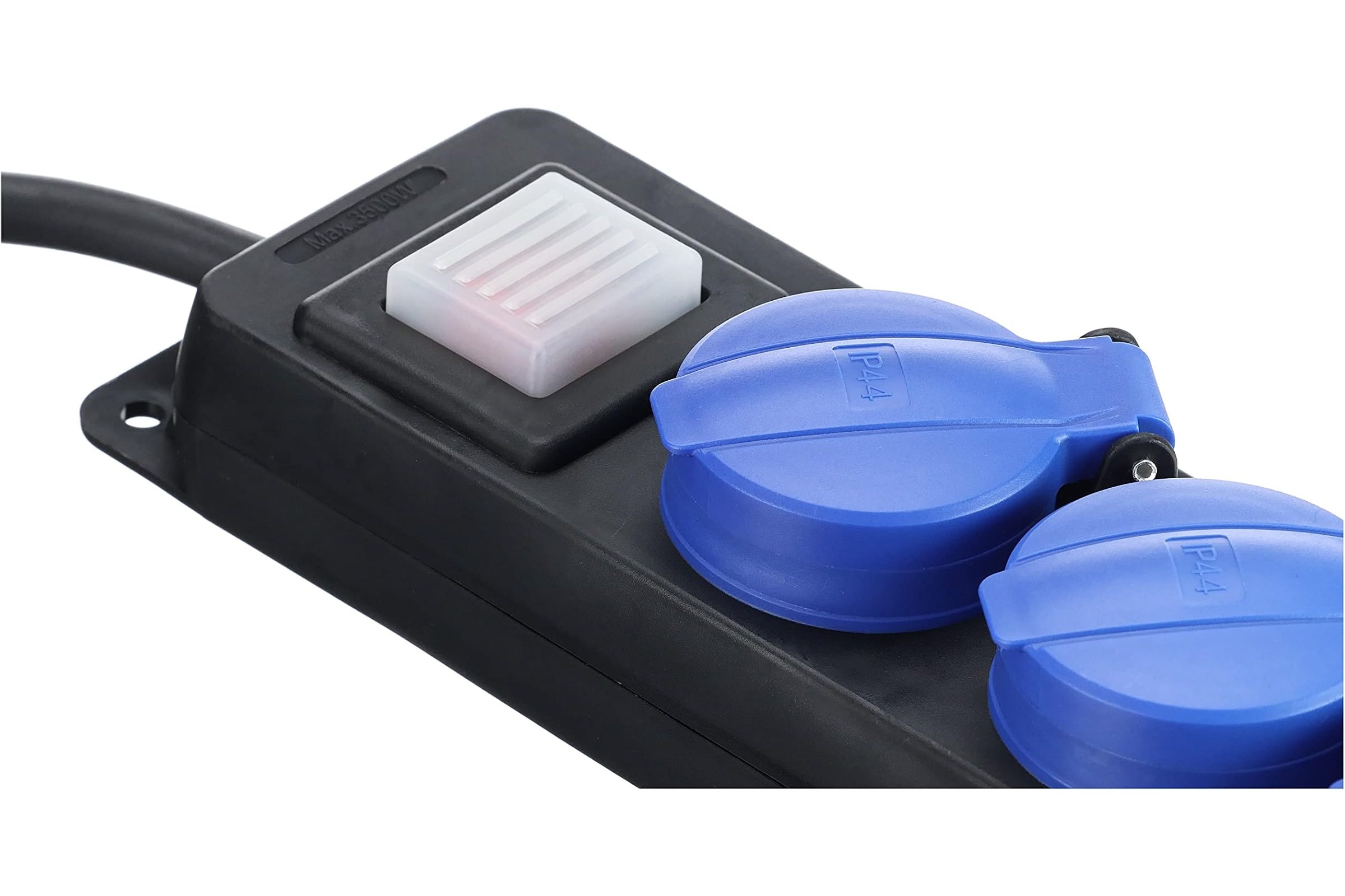 Wyjście | 3x gniazdo IP44 z niebieską klapką i uziemieniem 230 V, 16 A z włącznikiem |