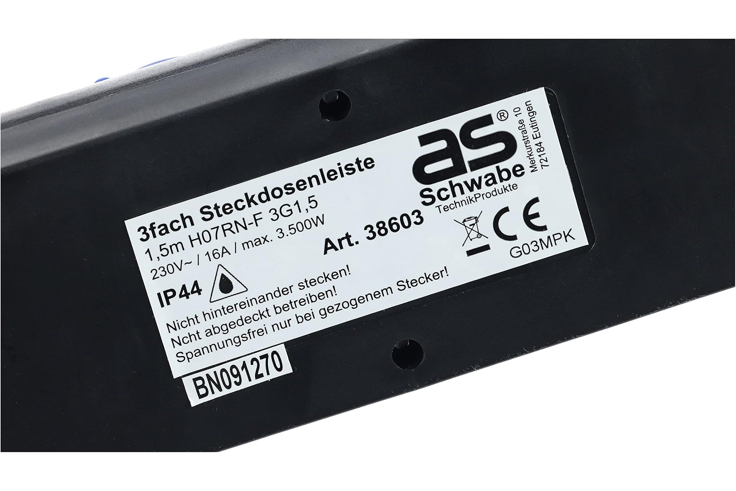 Przedłużacz listwowy budowlany 3-gniazdowy z włącznikiem, IP44 H07RN-F 3G1,5 CZA 1,5 m | 38603