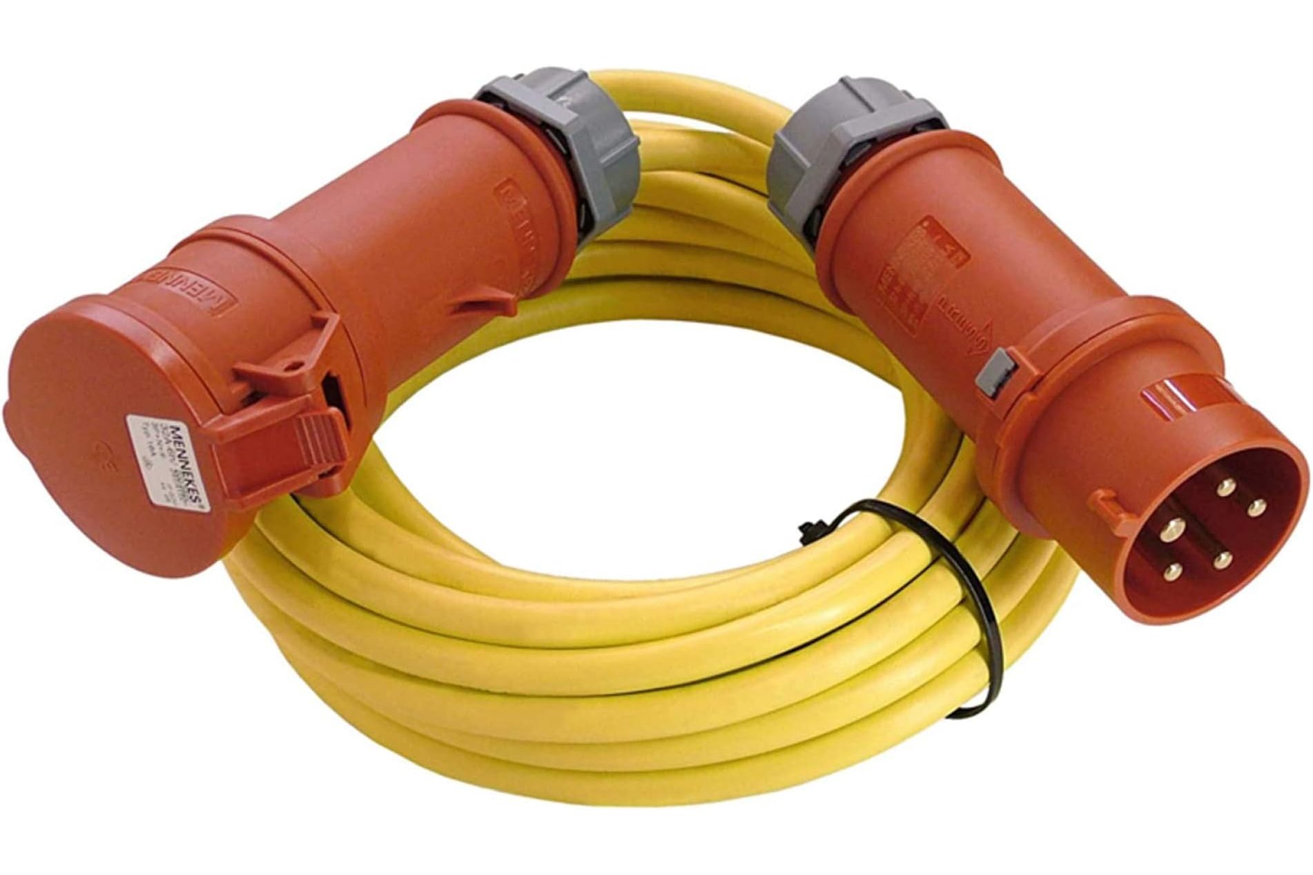 Przedłużacz CEE 400 V, 16 A, 5P o długości 25 m to idealne rozwiązanie do zasilania sprzętu elektrycznego w warunkach zewnętrznych. Wyposażony w wtyczkę CEE 400 V, 16 A, 5P oraz gniazdo CEE o tych samych parametrach, zapewnia maksymalne obciążenie 400 V i 16 A (11 kW), co czyni go doskonałym wyborem do intensywnych zastosowań przemysłowych i budowlanych. Kabel o konstrukcji AT-N07V3V3-F 5G1,5 w kolorze żółtym charakteryzuje się wysoką odpornością na uszkodzenia mechaniczne oraz warunki atmosferyczne, co gwarantuje bezpieczne użytkowanie na zewnątrz. Dodatkowo, stopień ochrony IP44 zapewnia ochronę przed wodą i zanieczyszczeniami, co czyni ten produkt niezastąpionym w trudnych warunkach.
