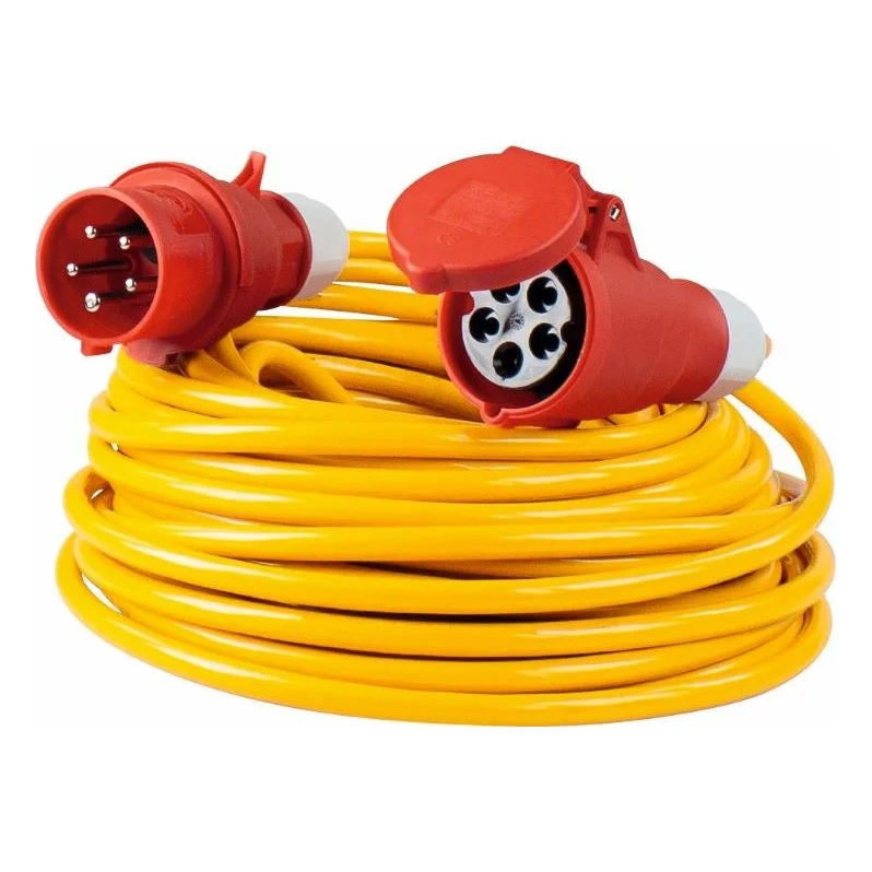 Przedłużacz CEE 400 V, 16 A, 5P o długości 50 m to rozwiązanie zaprojektowane z myślą o profesjonalnych zastosowaniach w trudnych warunkach zewnętrznych. Wyposażony w wtyczkę i gniazdo CEE 400 V, 16 A, 5P, jest w stanie bezpiecznie przesyłać moc do 11 kW, co czyni go idealnym wyborem dla przemysłu oraz budownictwa. Przewód o klasie ochronności IP44 zapewnia odporność na wilgoć i pył, co umożliwia jego użytkowanie w różnych warunkach atmosferycznych. Dzięki zastosowaniu wysokiej jakości materiałów, przedłużacz gwarantuje niezawodność i długotrwałe użytkowanie, co przekłada się na zwiększenie efektywności pracy. Wybierając ten produkt, zyskujesz pewność i bezpieczeństwo w przesyle energii elektrycznej.