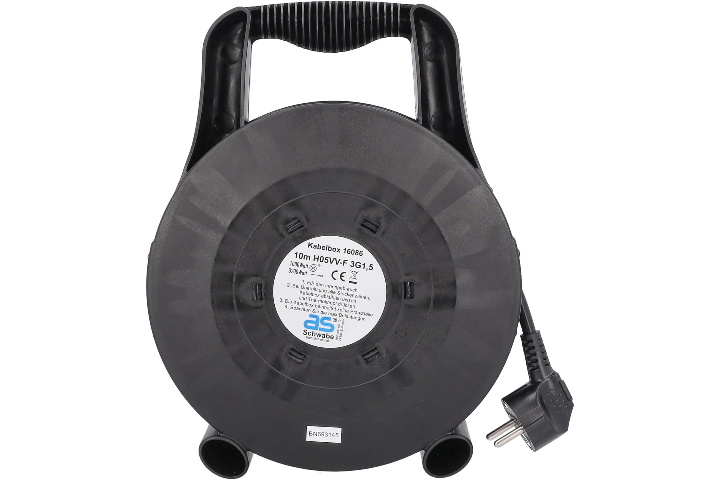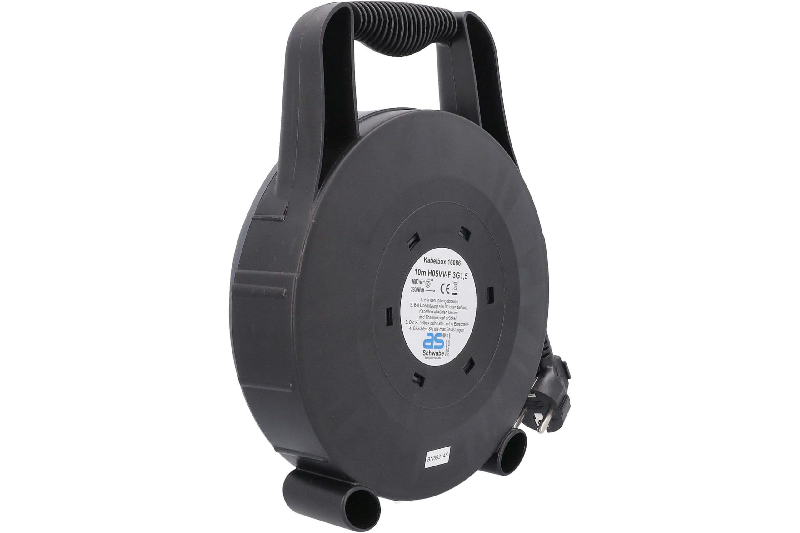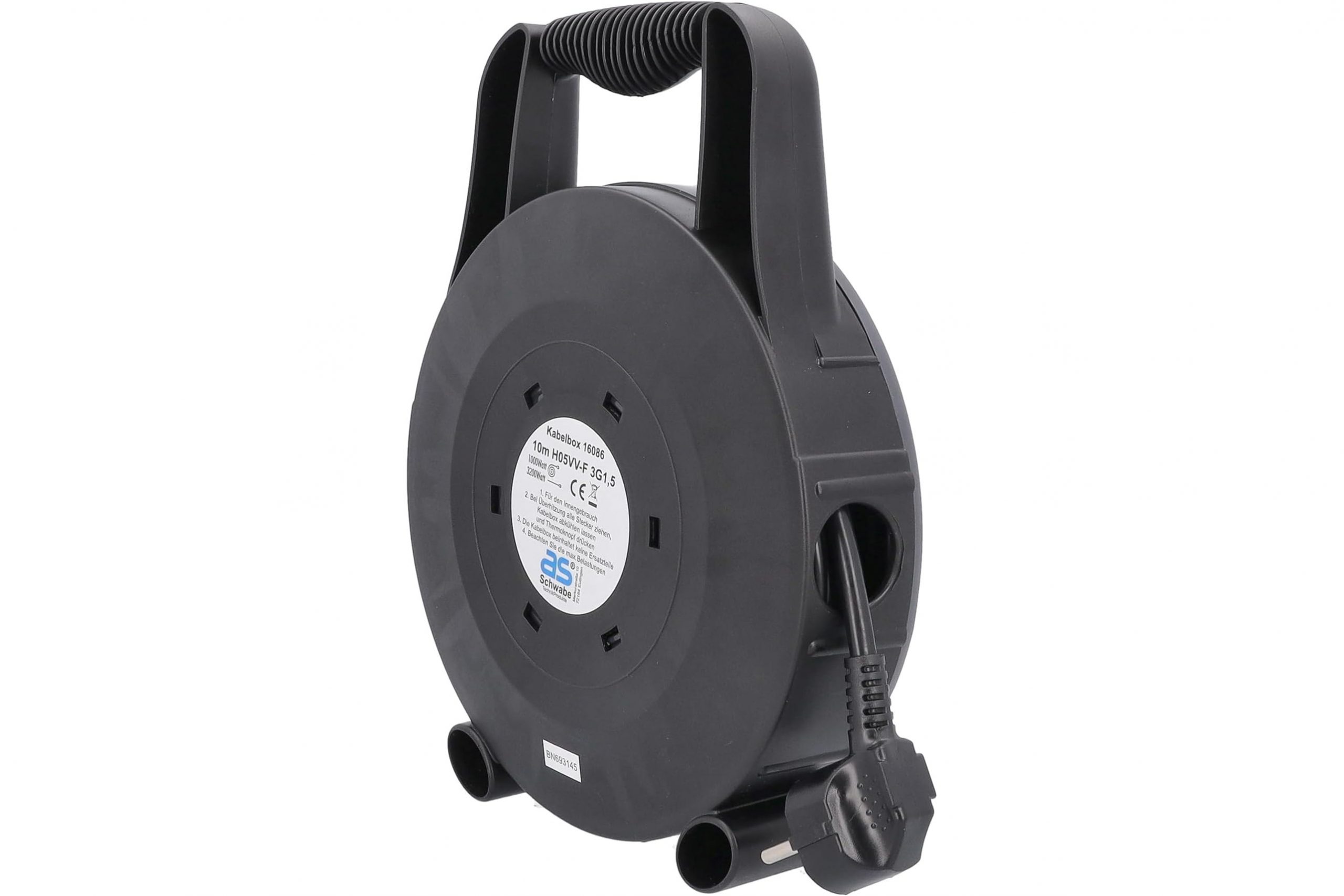 Przedłużacz bębnowy plastikowy w obudowie, IP20 H05VV-F 3G1,5 czarno/szary 10 m | 16086