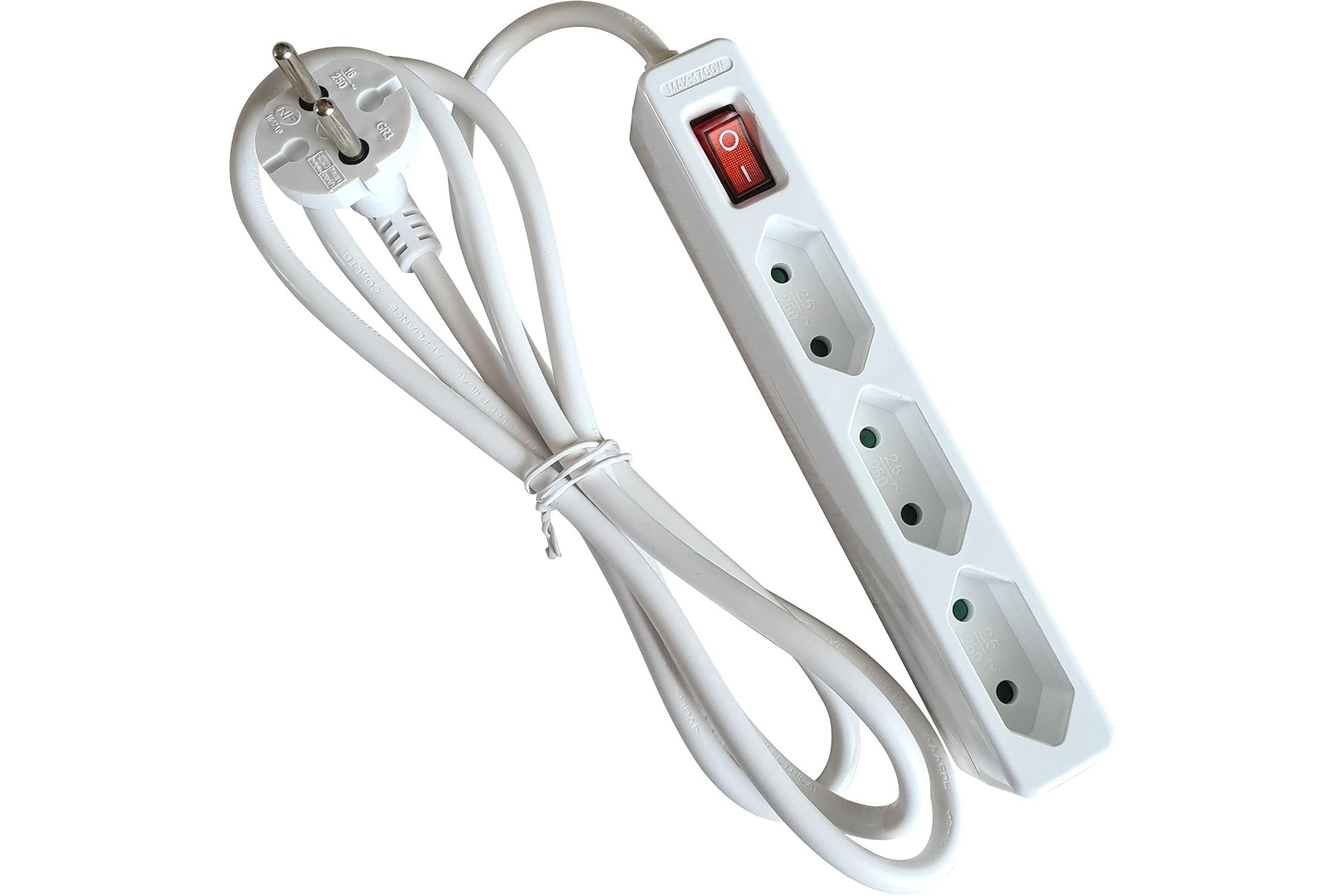 Przedłużacz listwowy 3-gniazdowy Euro, IP20 z włącznikiem H05VV-F 2x1,0 BIA 1,4 m | 11312