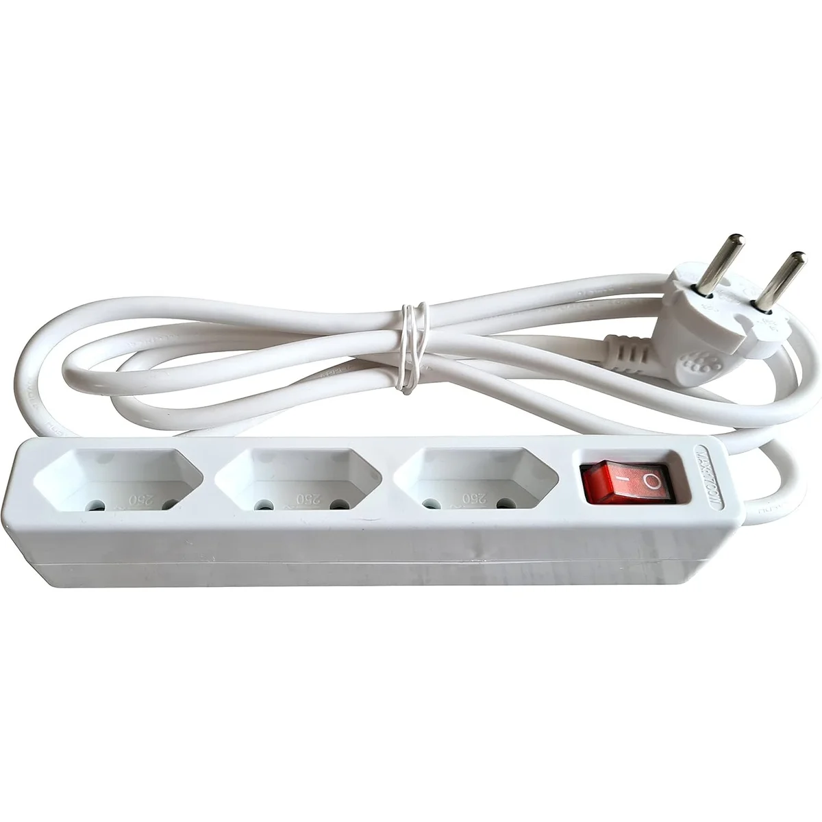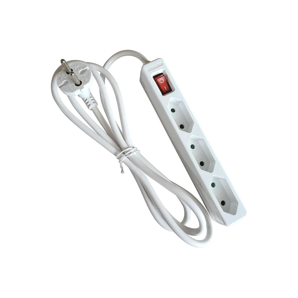 Przedłużacz listwowy 3-gniazdowy Euro z włącznikiem 1,4 m H05VV-F 2x1,0 BIA IP20 | 11312