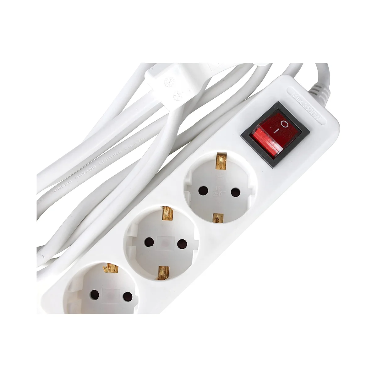 | Wyjście | 3x gniazdo IP20 z uziemieniem 230 V, 16 A, 2P+Z z włącznikiem |