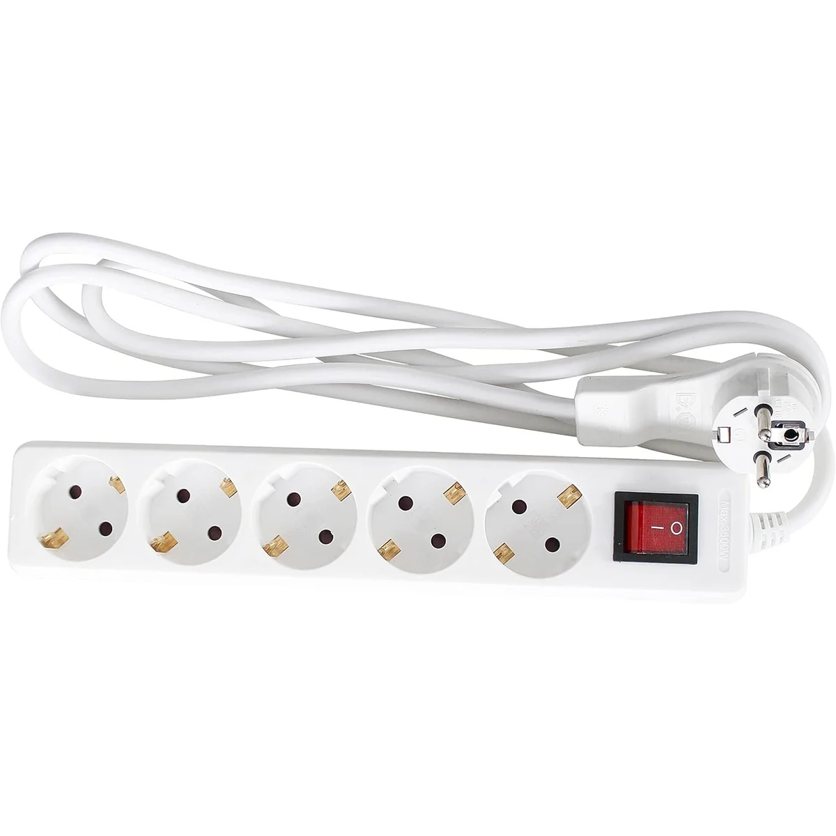 Przedłużacz listwowy 5-gniazdowy z Ultra płaską wtyczką kątową 2 m H05VV-F 3G1,5 BIA IP20 | 11393
