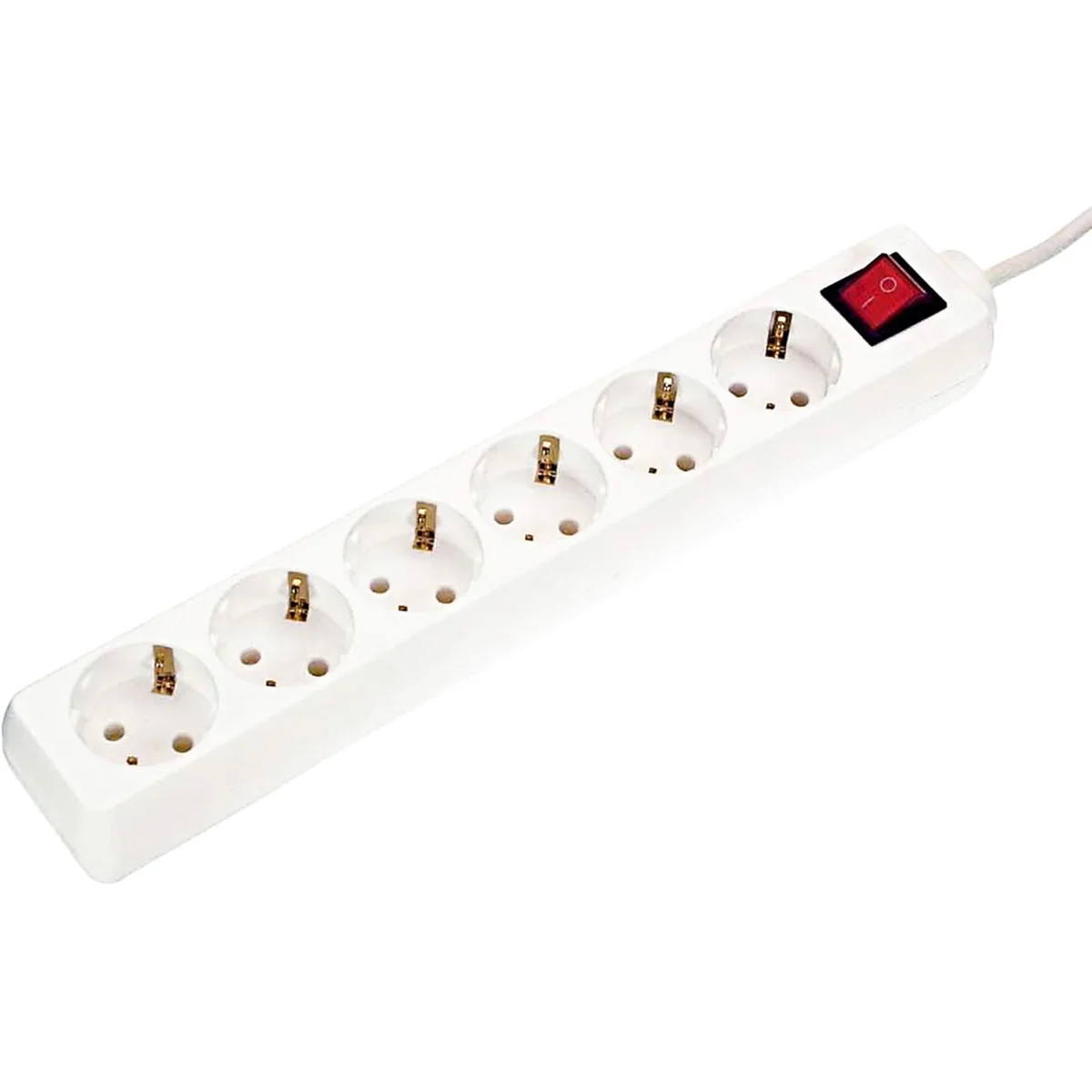Przedłużacz listwowy 6-gniazdowy z włącznikiem bez przesłon 1,4 m H05VV-F 3G1,5 BIA IP20 | 11501