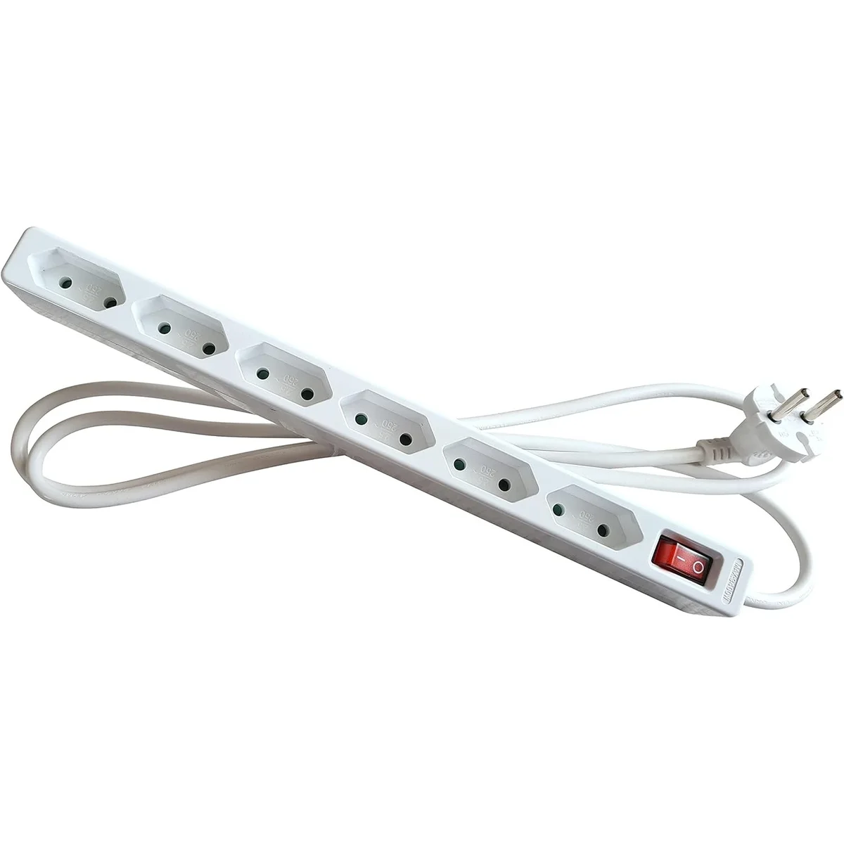 Przedłużacz listwowy 6-gniazdowy Euro z włącznikiem 1,4 m H05VV-F 2x1,0 BIA IP20 | 11314