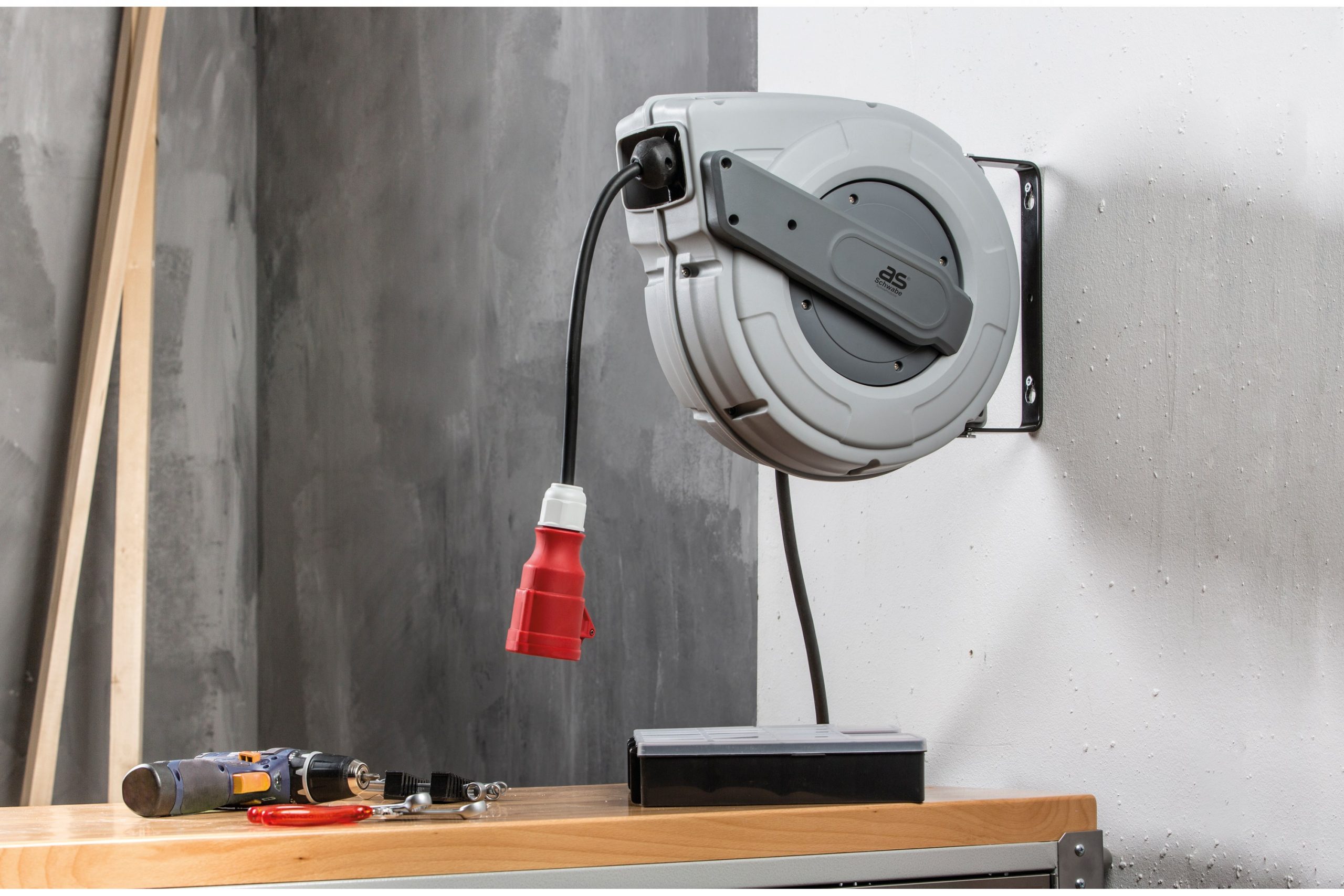 - wystarczy lekkie pociągnięcie za kabel, a automatyczna zwijarka nawinie przewód w obudowę szpuli kablowej