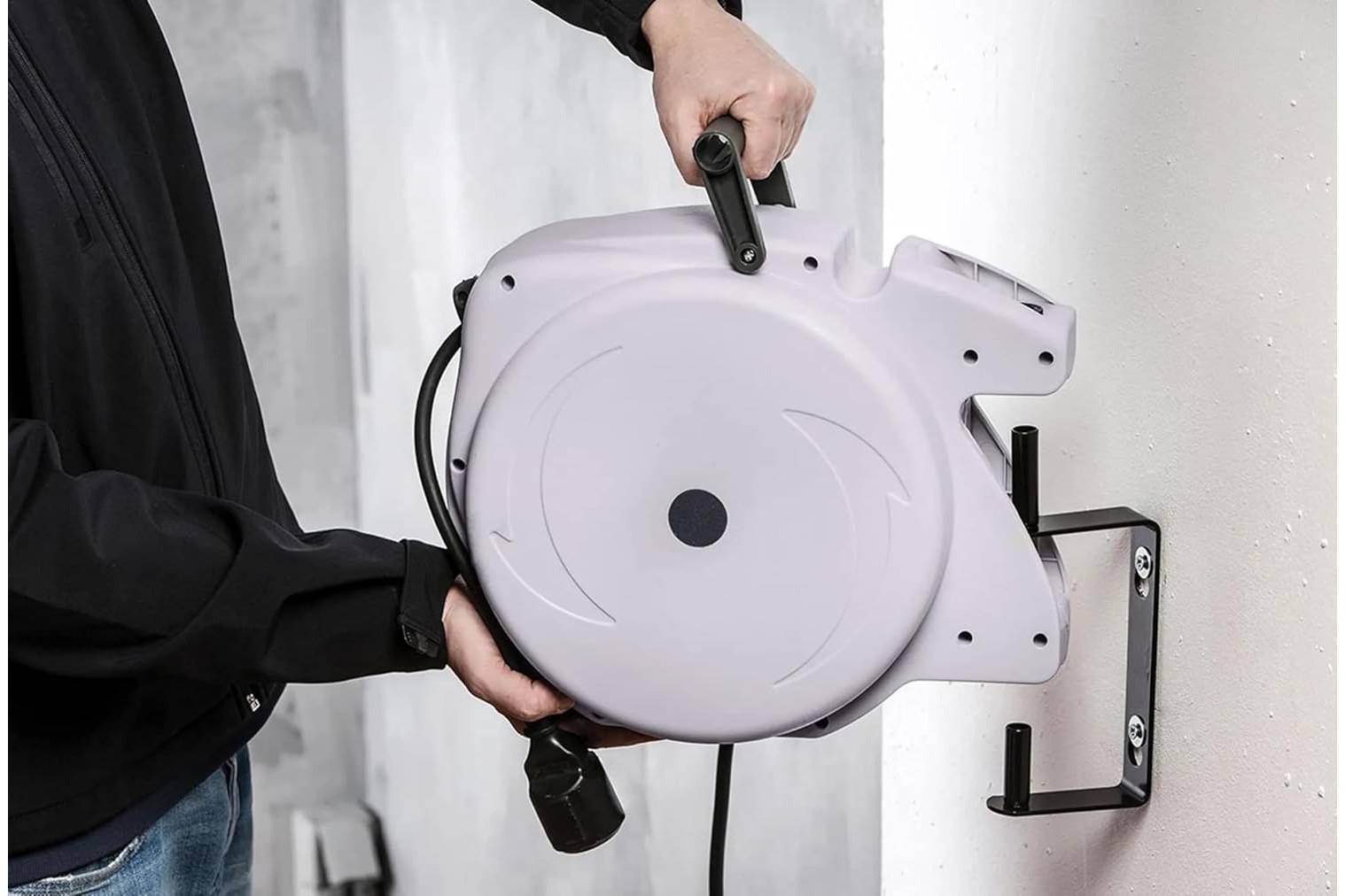 - wystarczy lekkie pociągnięcie za kabel, a automatyczna zwijarka nawinie przewód w obudowę szpuli kablowej
